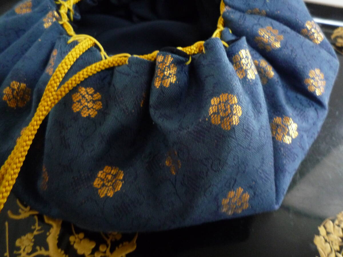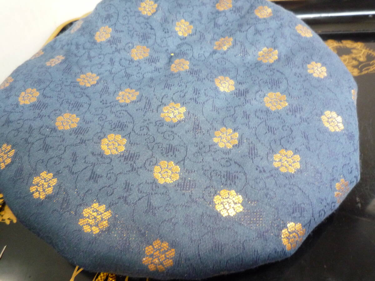 仕覆(しふく)・金彩花文緞子・36cm・四方柱・隅立て・手縫い。