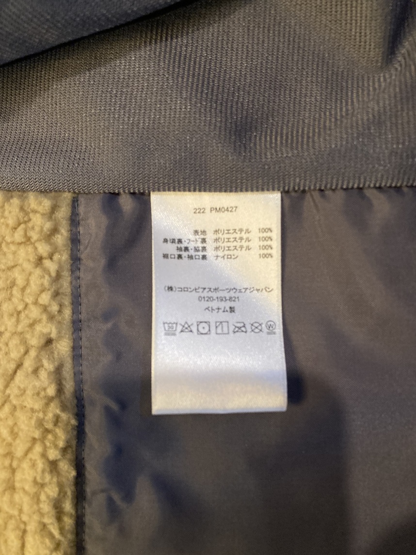 【中古:メンズ】Columbia コロンビア PM0427 ベージュ ボア付き ジャケット Мサイズ アウトドア