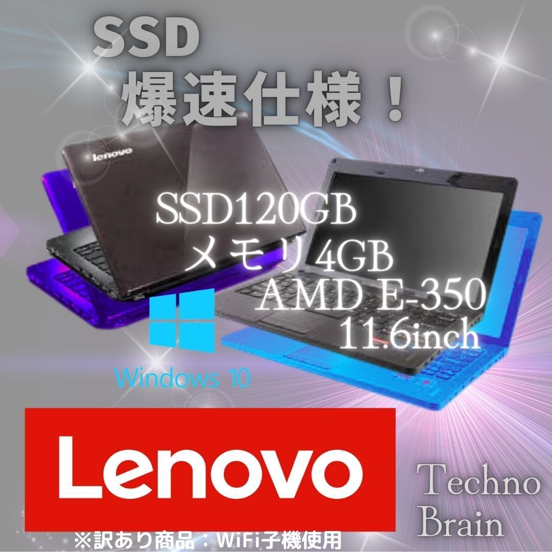 【中古/激安】【SSD新品使用】Lenovoノートパソコン/ideapadS205/AMDE-350/SSD120GB/メモリ4GB/11.6インチ/爆速仕様※訳あり商品【N0029】
