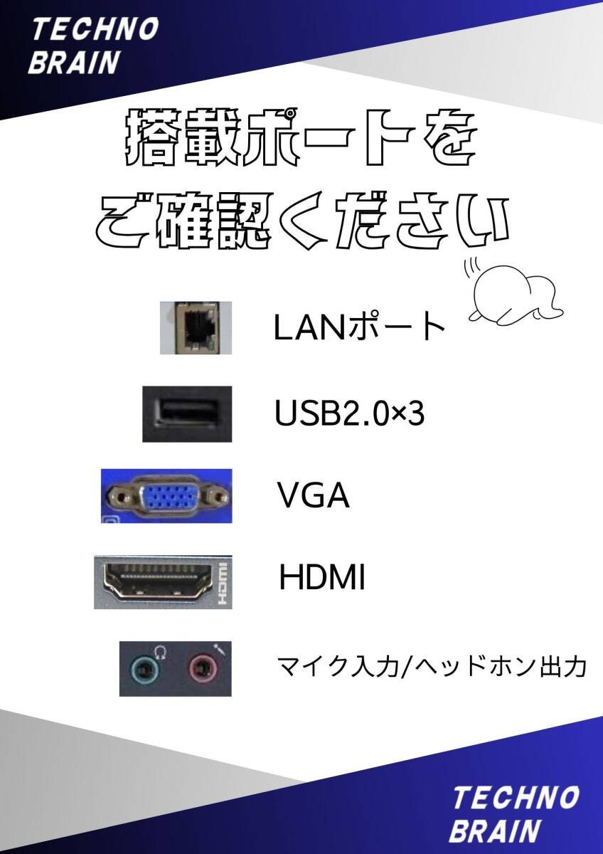 LAN/VGA/USB2.0×3/HDMI/マイク入力/ヘッドホン出力