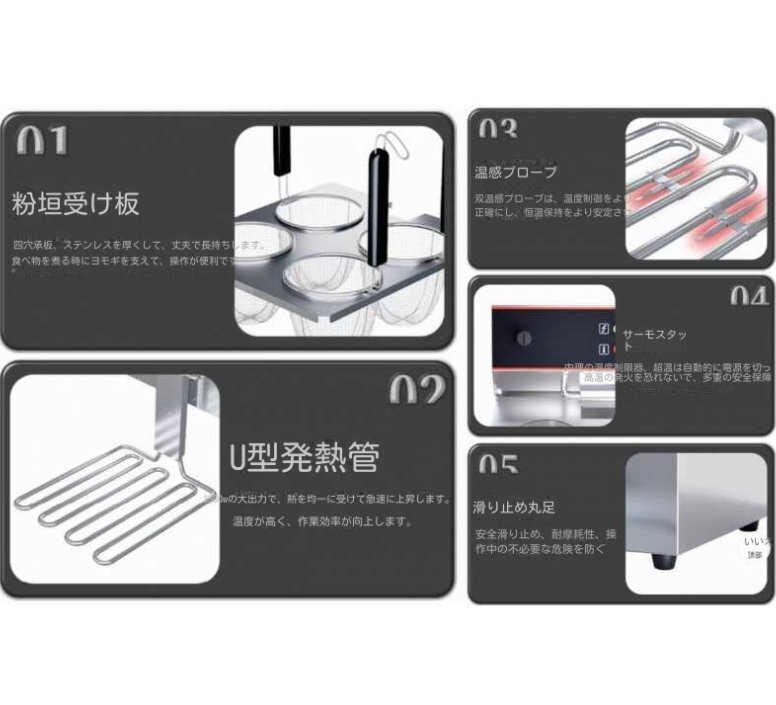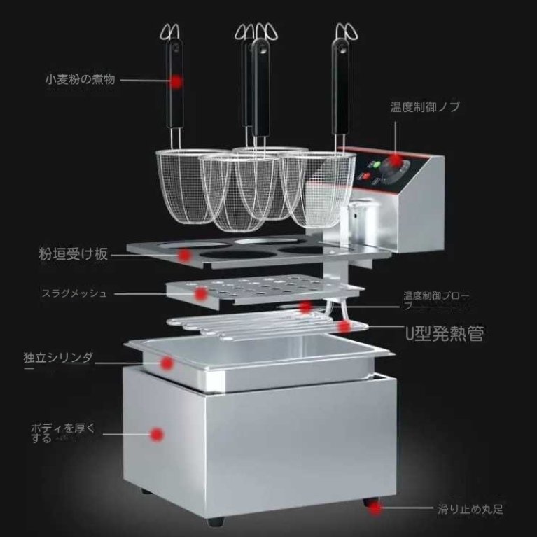 デスクトップ麺調理機ゆで麺器 麺茹で器 ゆでめんき 卓上電熱ゆで麺炉 電気パスタクッカー、4穴パスタ野菜クッカー、60-200℃温度調節可能