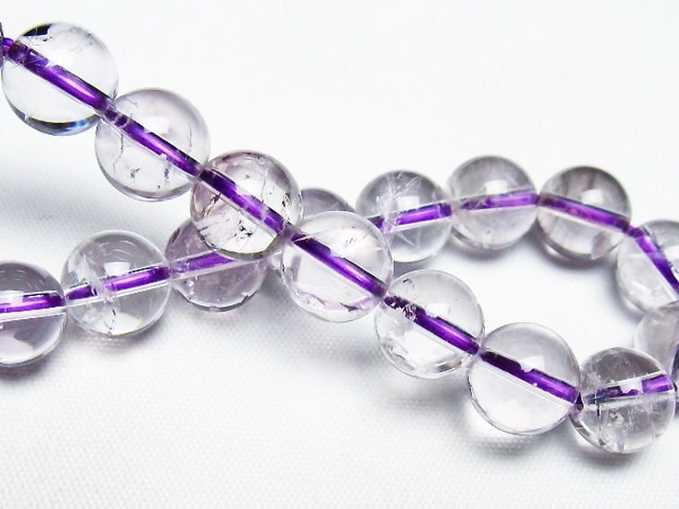 | ■商品名: アメジストブレスレット ■商品ID: T403-17780 ■商品重量:約 27.2g ■商品サイズ:内周約:162mm(±5mm)粒直径約:10mm(±0.5mm) 【アメジストクォーツ(紫水晶)】 アメジストは鉄分によって紫色に発色した水晶の一種です。 名称はギリシャ語で酒の意味のmethyと否定辞のa、つまり「酒に酔わない」「この石でできた盃で酒を飲めば悪酔いしない」に由来するとされています。 「酒に酔わない」と言われる通り、アメジストは体調面への作用が大きく、血液を浄化して解毒、解熱作用を高め皮膚病の治療や不眠を解消するのにも用いられたと言われています。 アメジストは真実の愛を導く愛の守護石とも呼ばれ恋愛運UPの石としても広く知られています。 理想的な出会いをもたらす効果や持ち主に美や調和を与え、セクシーな魅力を引き出すとのことですので恋愛成就のお守りとしても最適といえるでしょう。 また、くよくよしたり傷ついたりしている時には癒し、目前の困難を乗り越えていけるように精神を強くするヒーリング効果も期待できます。 不眠にも効果があるとされていますので、ストレスを抱えている人にもおすすめの石です。 ⇒ アメジストをもっと詳しく ◆ワンポイント情報 アメジストは産地によって結晶や色味の傾向が変わります。 例えばブラジル産は結晶が大きめだが色味は少し薄め、ウルグアイ産は結晶は小さく細かいが色味は濃紫の傾向、メキシコ産は細長い結晶でライラックの様な明るく透明感のある紫など特徴が異なります。 産地による好みが人によって分かれるのもアメジストならではと言えるでしょう。 |