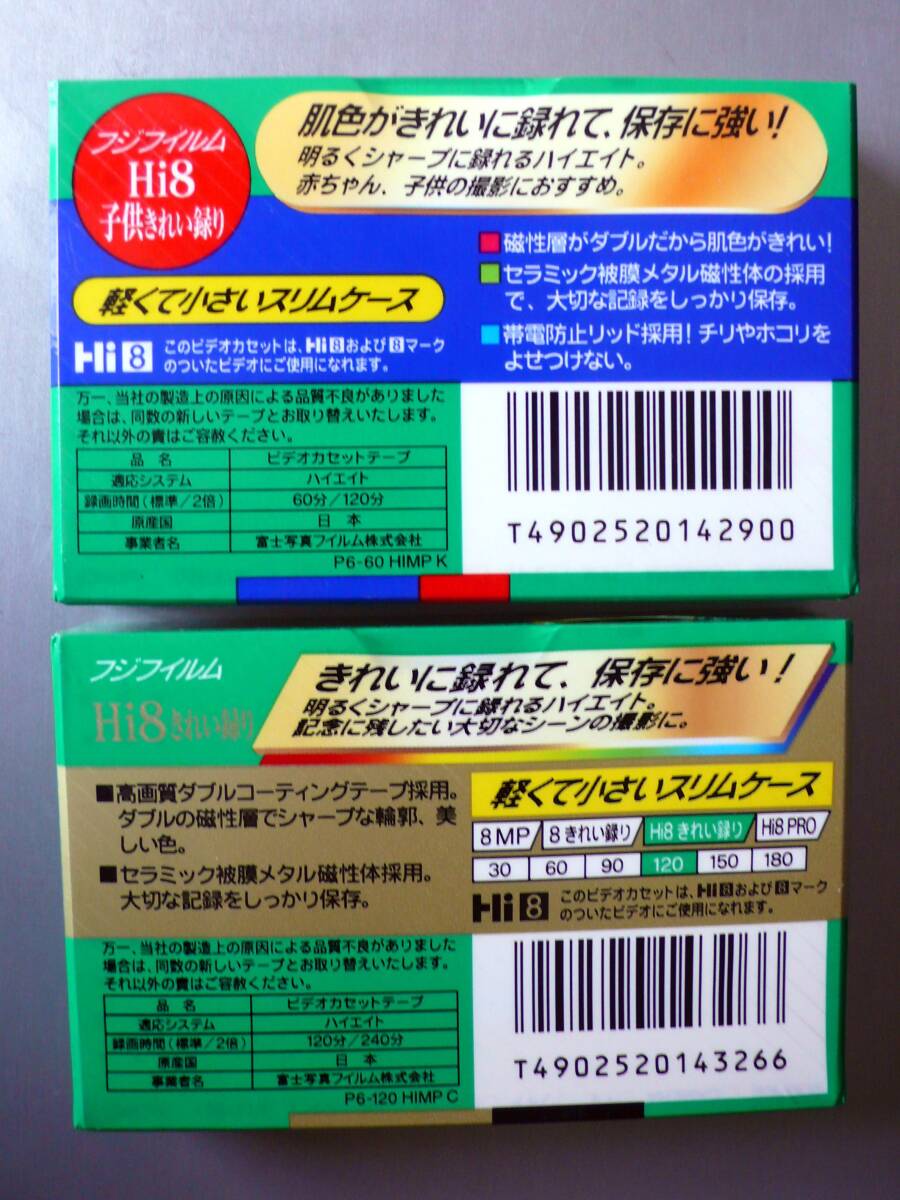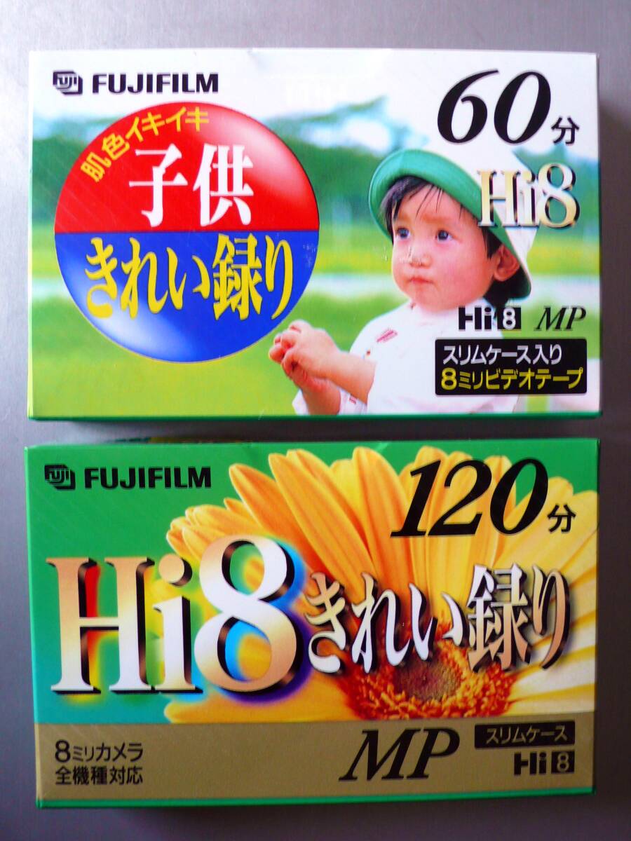 8ミリビデオ撮影用の、富士フイルム社製 MP品質、スリムケース入り8ミリビデオテープ 120分と60分の2本です。