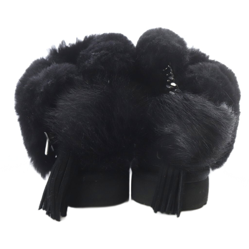 アグ オーストラリア UGG australia タッセル ショートムートンブーツ ロゴ 22cm 黒 ブラック /SR レディース