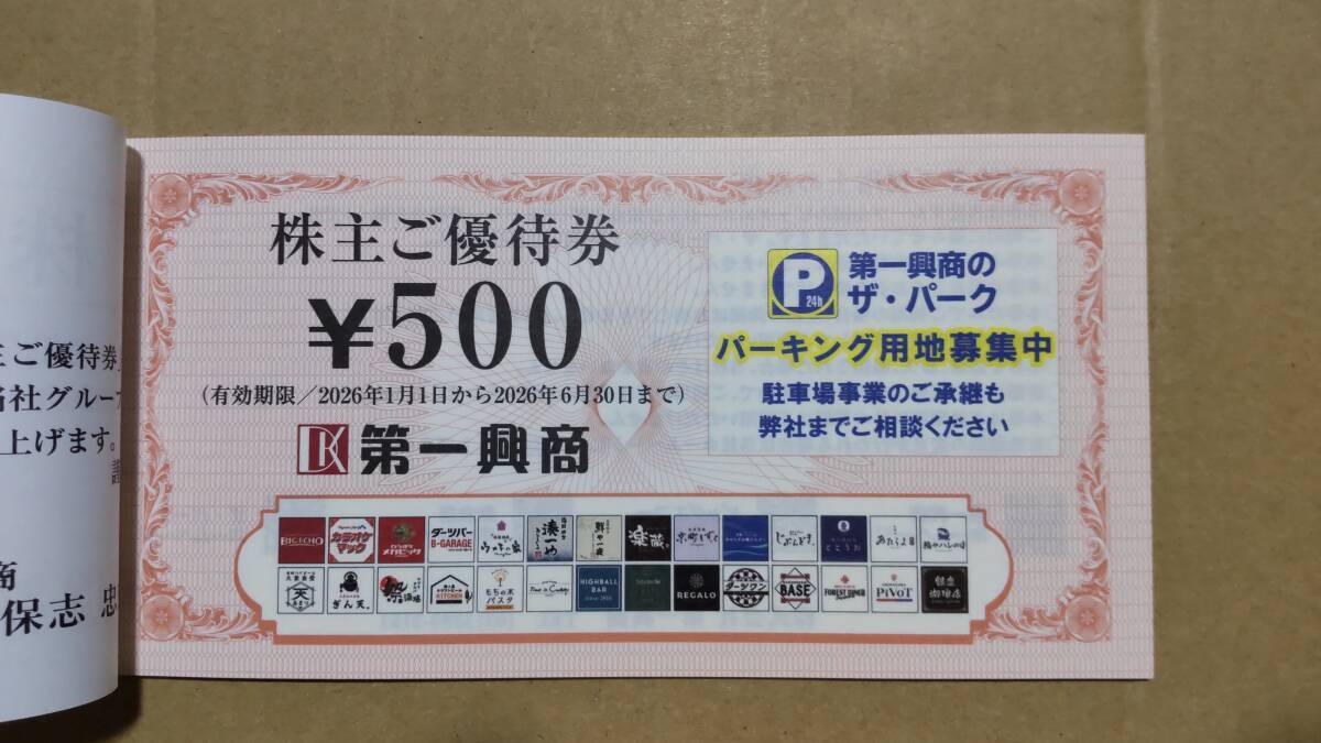 第一興商の株主優待券5,000円分(500円券×10枚)