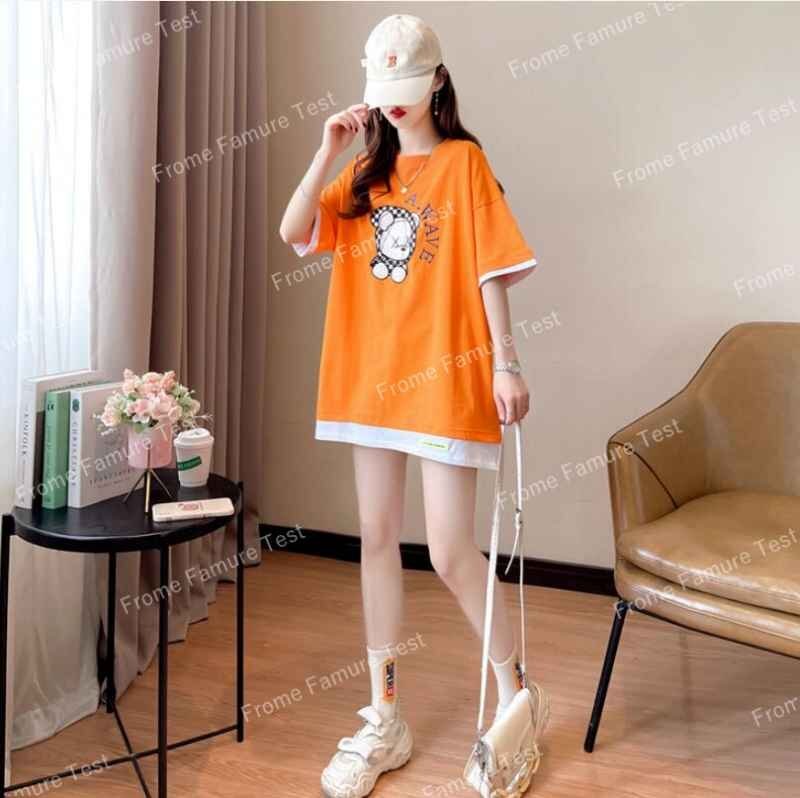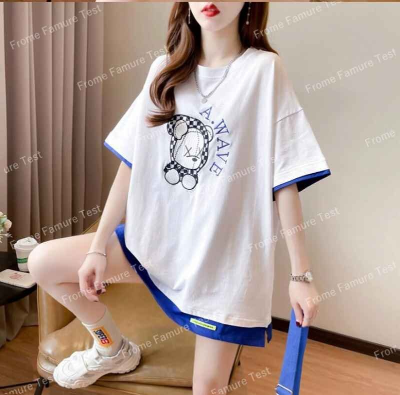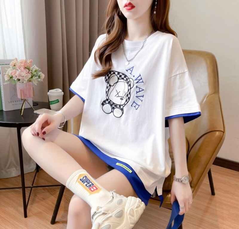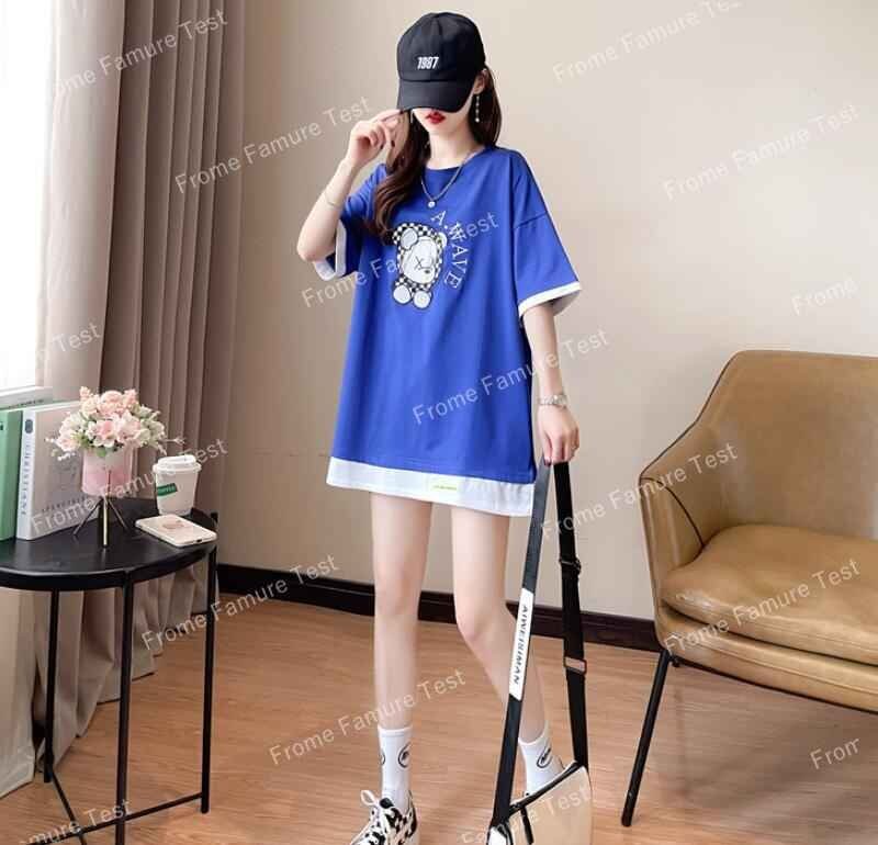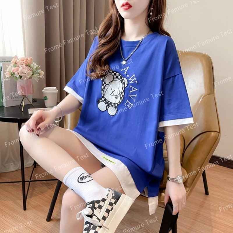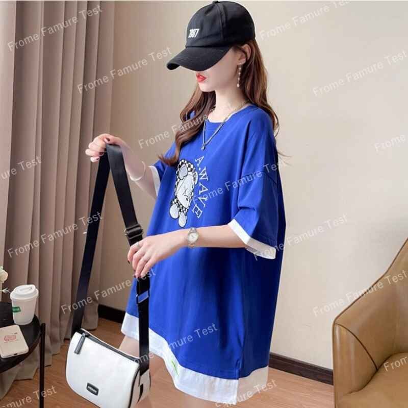 半袖Tシャツ ロング丈 韓国ファッション レディース XL ブルー
