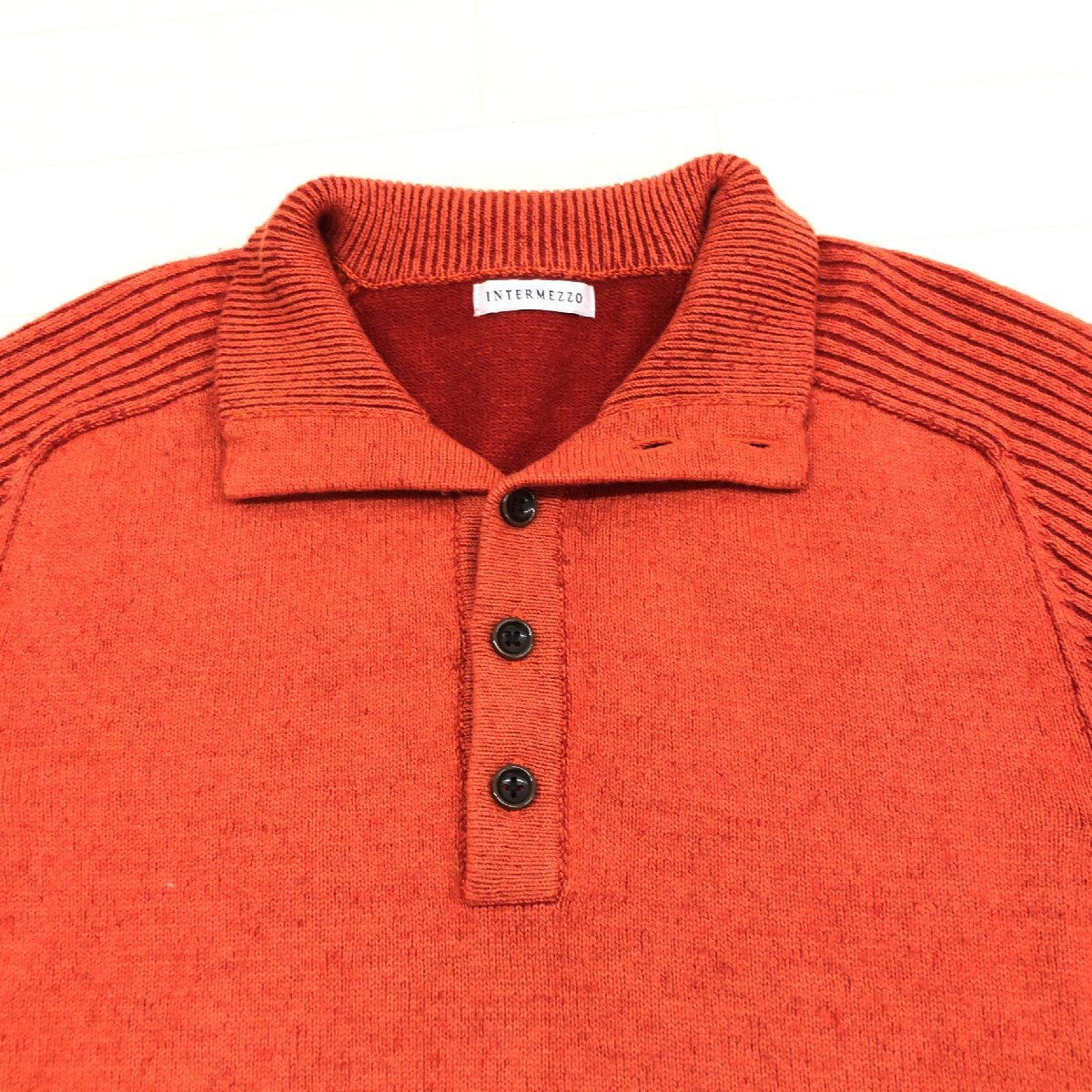 ●INTERMEZZO インターメッツォ デザイン編 カシミヤ混 ウール ニット セーター L オレンジ カシミア カジュアル レナウン メンズ 紳士