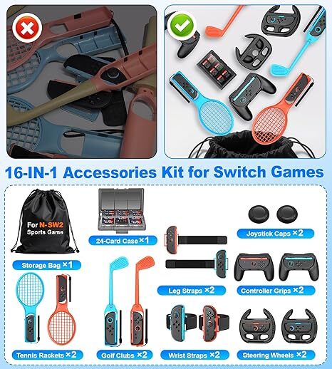 • 【Nintendo Switchプレイヤーへの完璧なギフト】Switchスポーツゲーム用に設計されたこの16-in-1スポーツアクセサリーキットは、スポーツゲーム体験をよりリアルで競争的なものにし、友人や家族とゲームを楽しむのに最適です。家族や友人、すべてのNintendo Switchゲームプレイヤーへの理想的なギフトです。