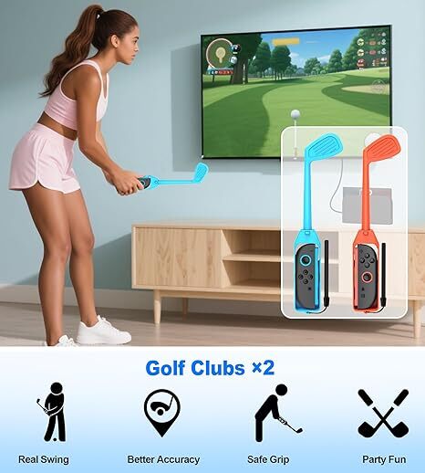 • 【2025年版Nintendo Switchスポーツアクセサリー】このSwitchスポーツアクセサリーバンドルは、Nintendo Switch/Switch OLED用のゲームアクセサリーセットです。2人同時プレイに対応しており、ゲームの競技感を高め、よりリアルなスポーツ体験を提供します。マリオゴルフ スーパーラッシュ、マリオテニス エース、ジャストダンス、リングフィット アドベンチャーなどのNintendo Switchスポーツ・フィジカルゲームに最適です。