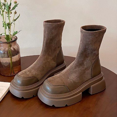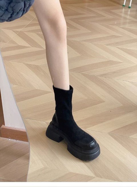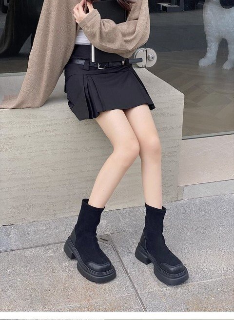 ・フェイクレザー×フェイクスウェードを切り替えたシーズンムードを高める1足。