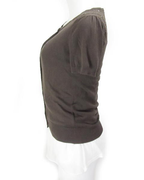 | コンディション | カーディガンの右肩レース部分・左裾上にヒッカケがございます。 インナーのフロントに汚れがございます。アームホール・裾内側に毛玉がございます。 |