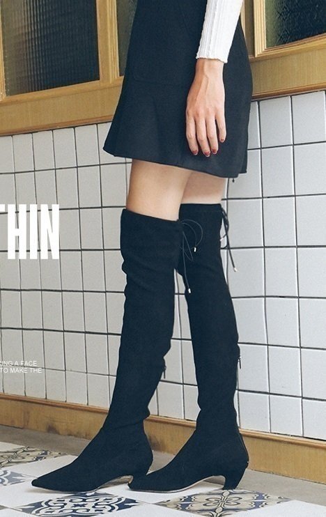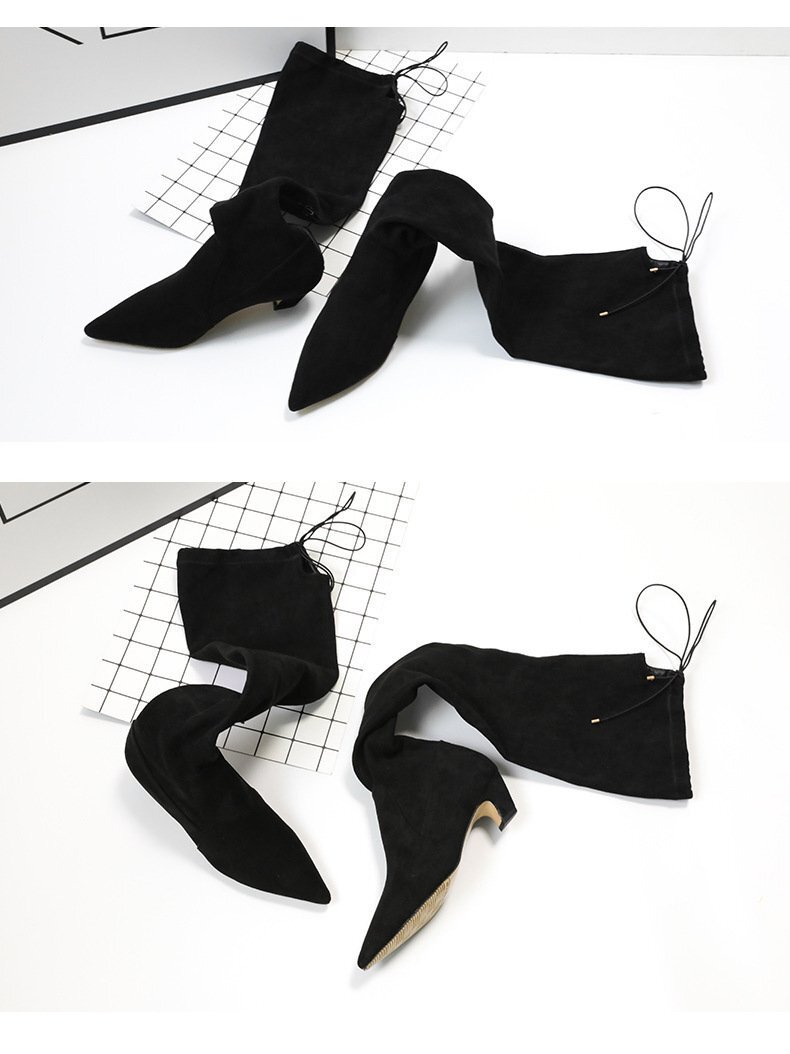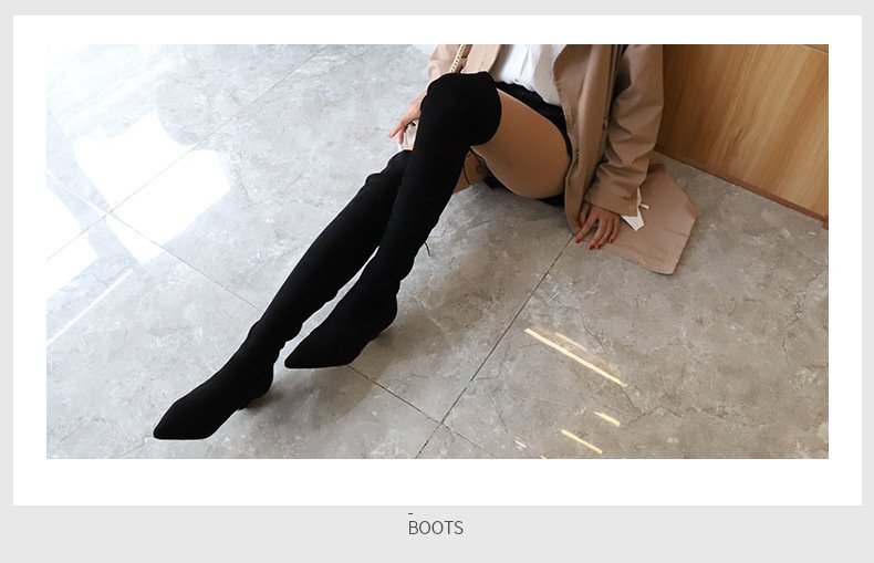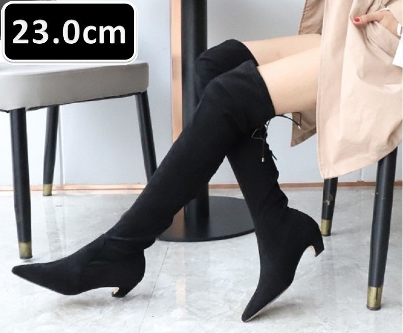 ☆177 秋冬 レディース ニーハイブーツ ブラック 23.0cm ストレッチスリム 腿高 ブーツ 膝ブーツ ハイヒール 靴 美脚