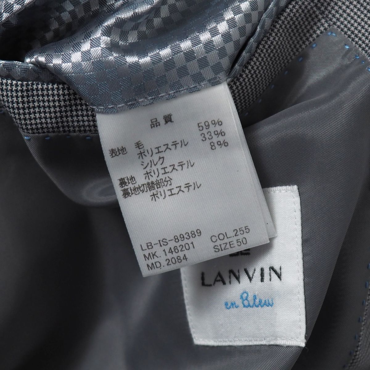| SGS5308▽ランバンオンブルー/LANVIN en Bleu*メンズ50*シルク混*マイクロハウンドトゥース*2B テーラードジャケット/ブレザー*グレー系 | |||