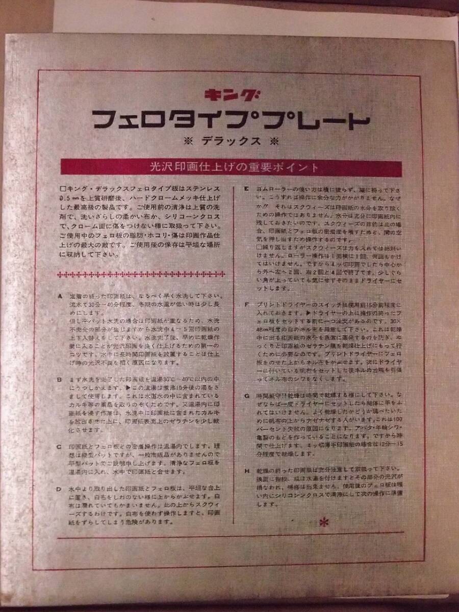 プリントドライヤー使用の手順はフェロタイプ プレート デラックスのパッケージ記載されています。