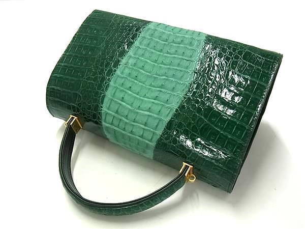 1円 ■極上■本物■美品■ KAIYO カイヨウ クロコダイル カイマン ワンハンドル ハンドバッグ レディース グリーン系 FW0094