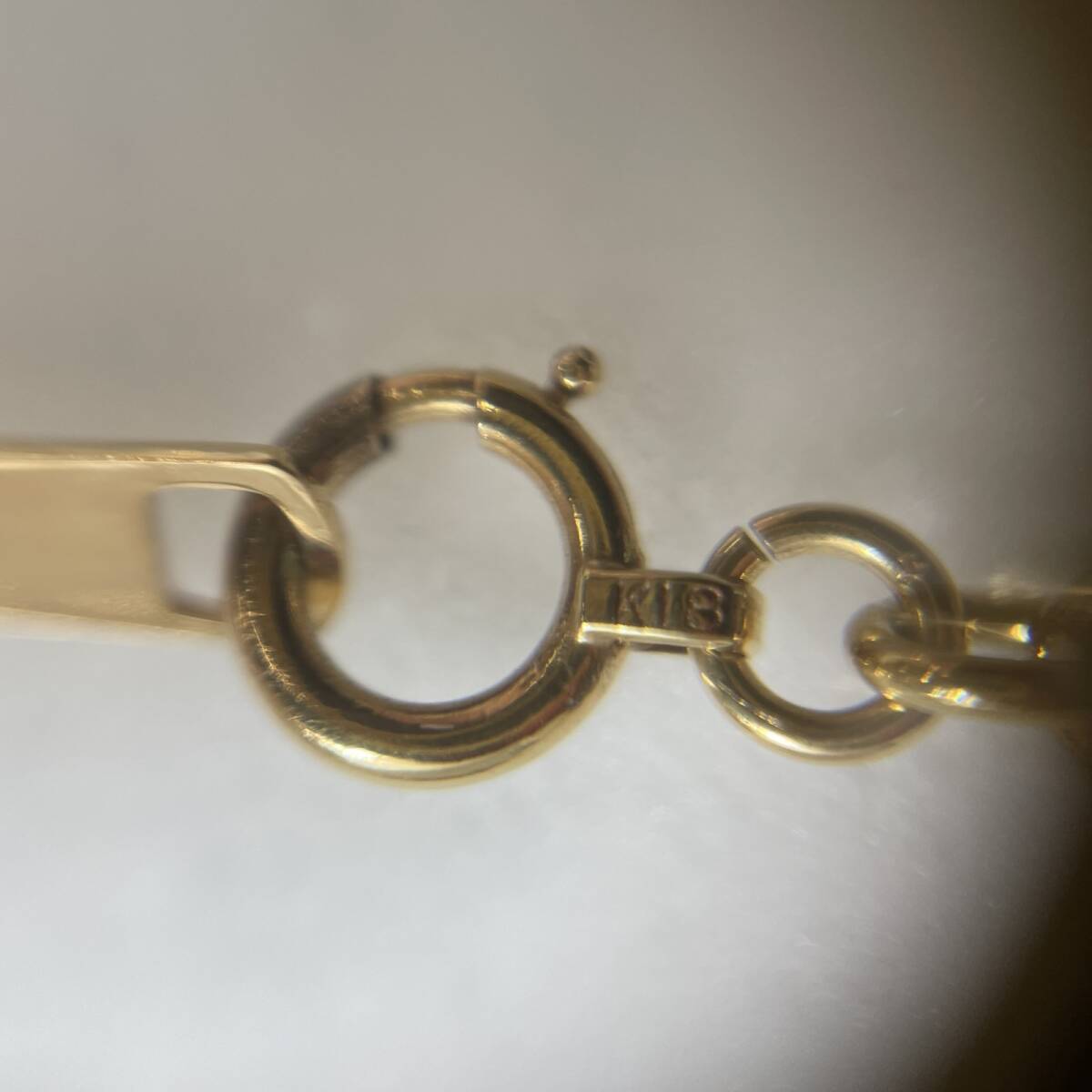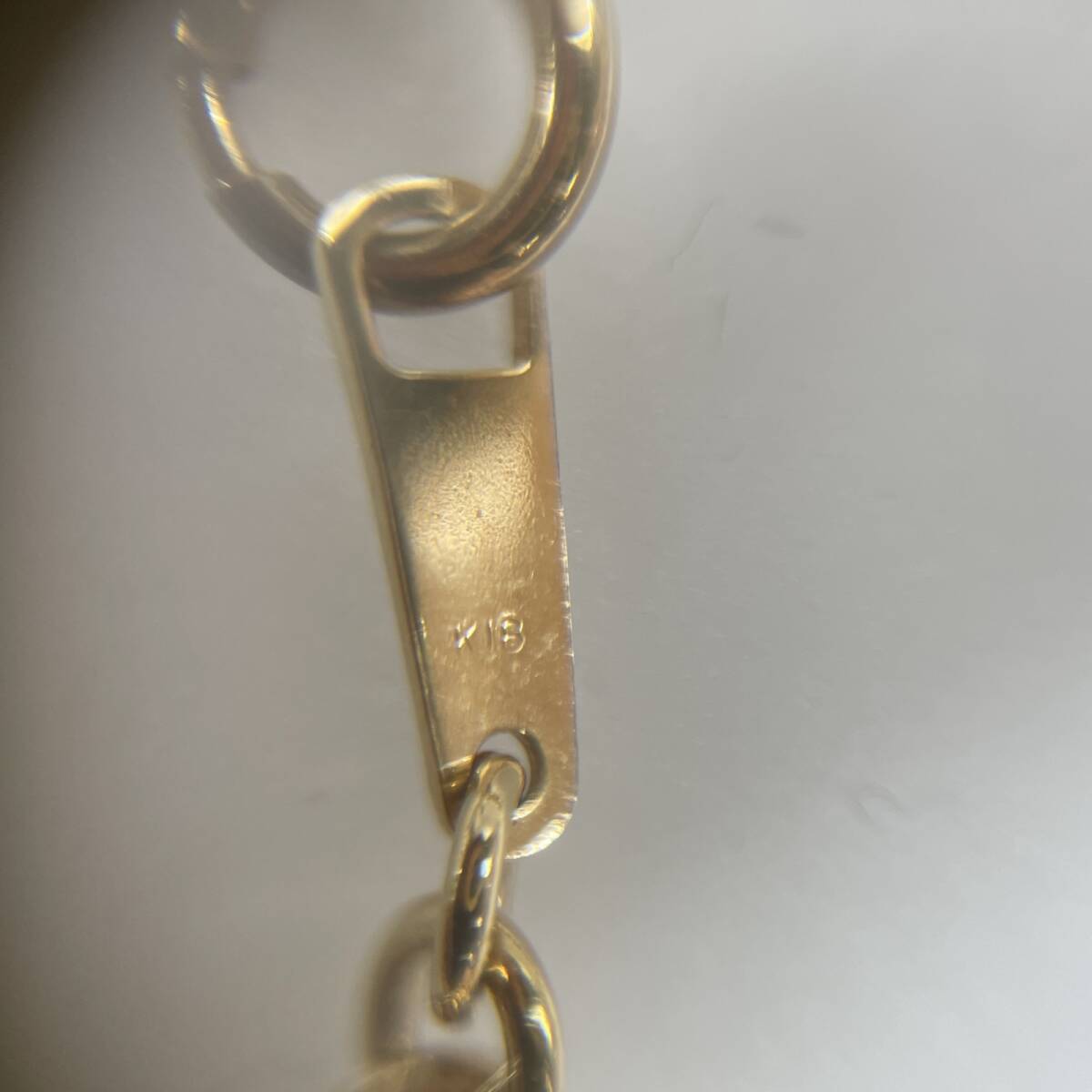 ・留め具の輪っかとプレート部ぞれぞれにK18刻印あり。留め具輪っか部を除いた全体的に磁石への反応なし。詳細は不明の現状品となります。ご理解の上、ご購入お願いいたします。