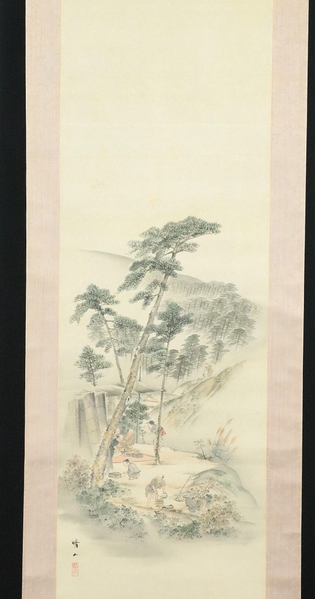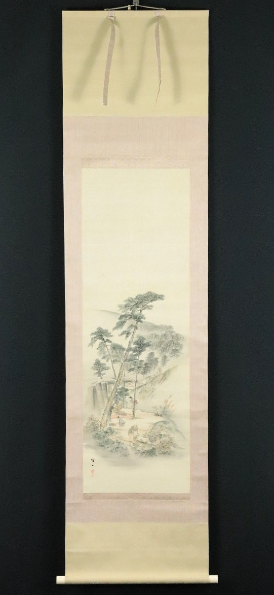11983■【真作】大崎晴山 人物図 絹本 肉筆 武部白鳳師事 大阪 掛軸