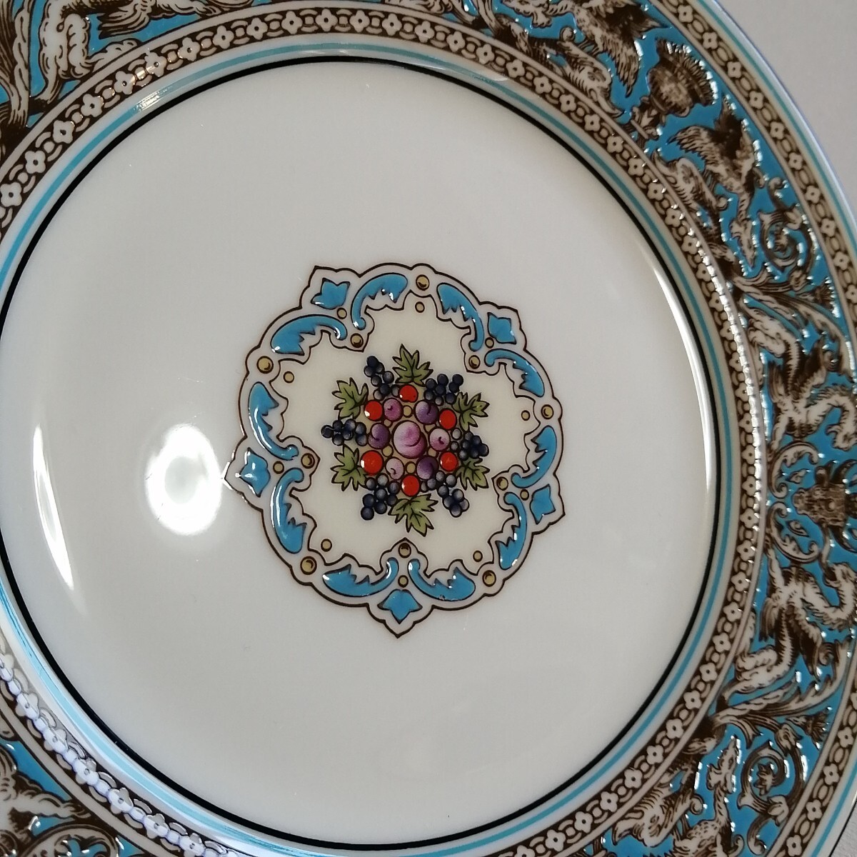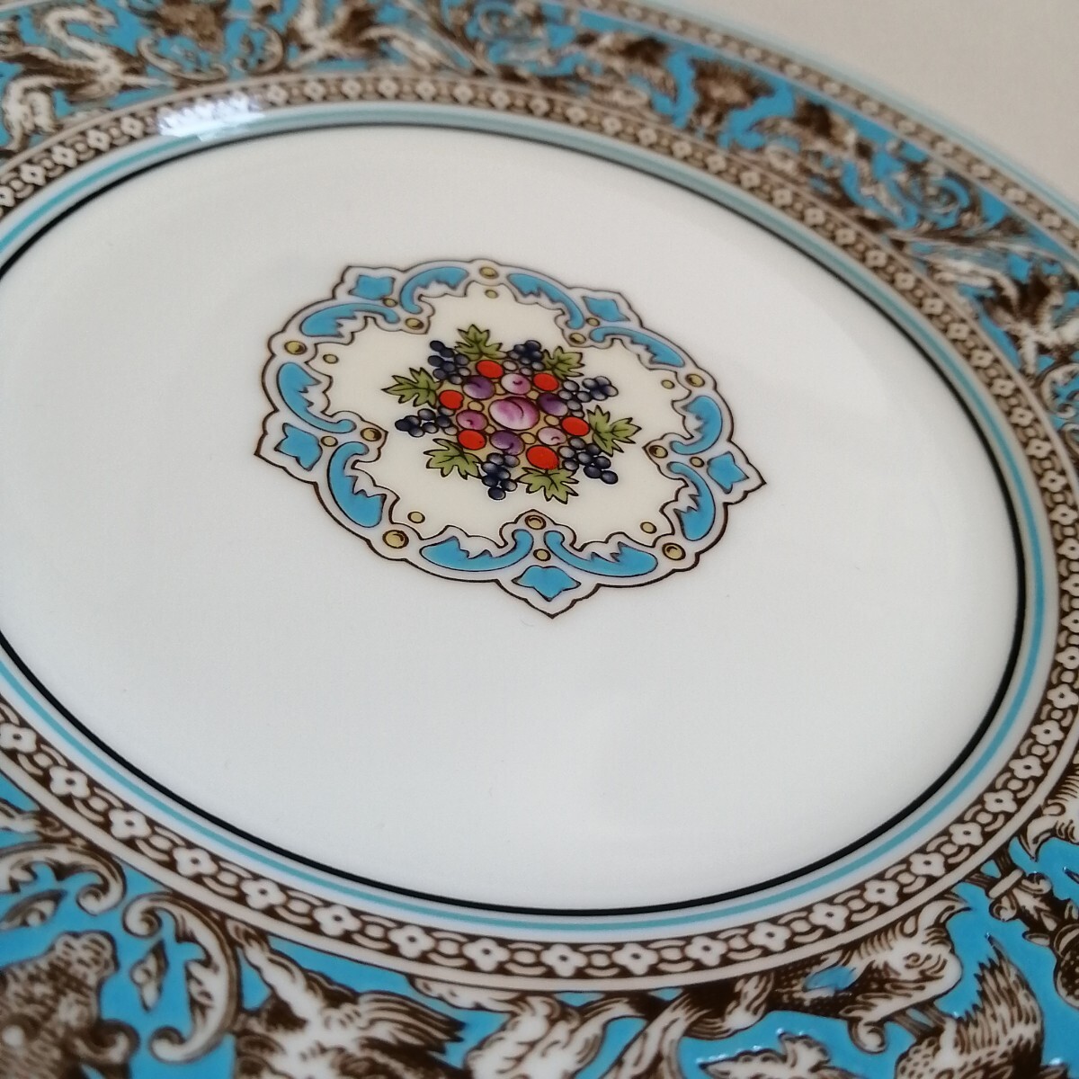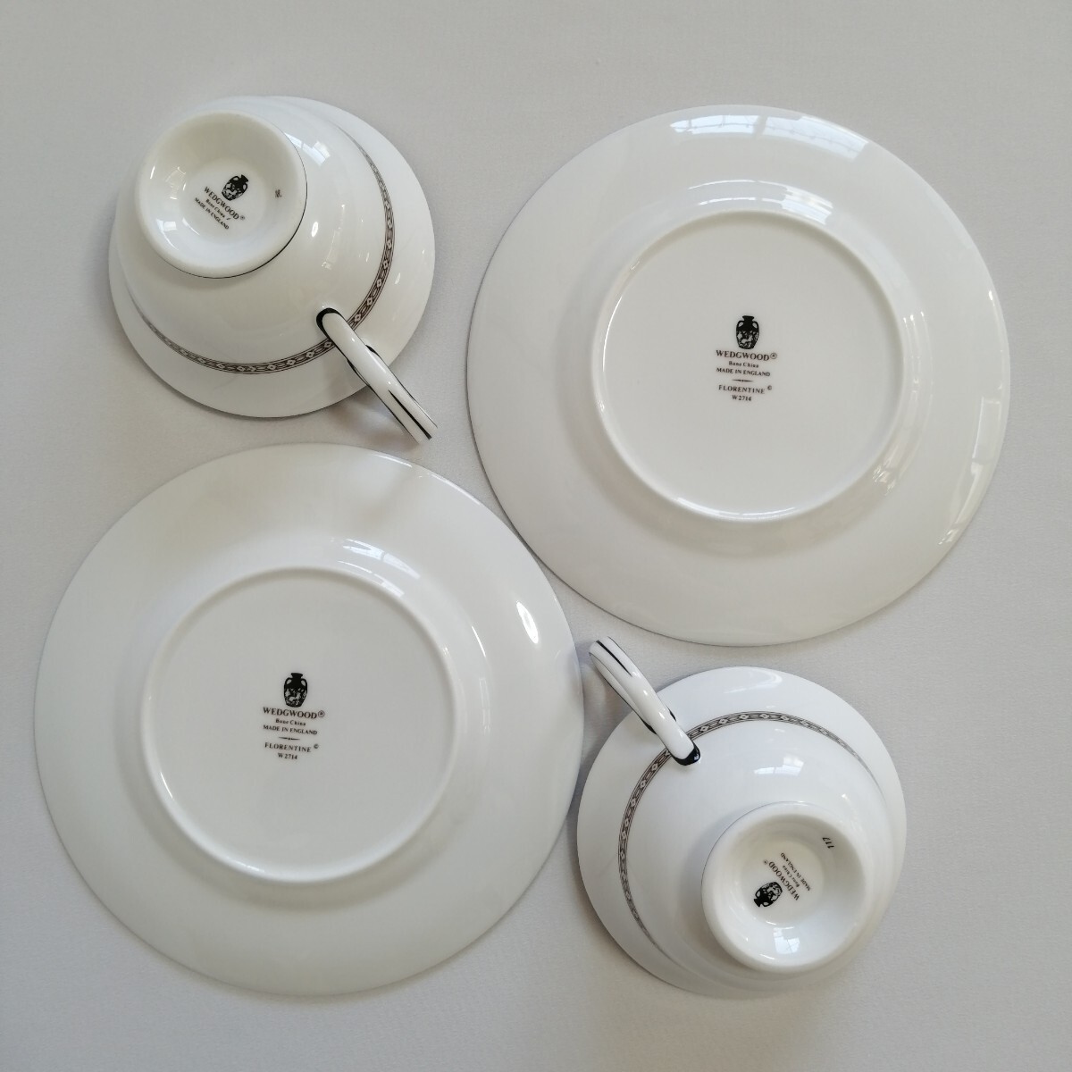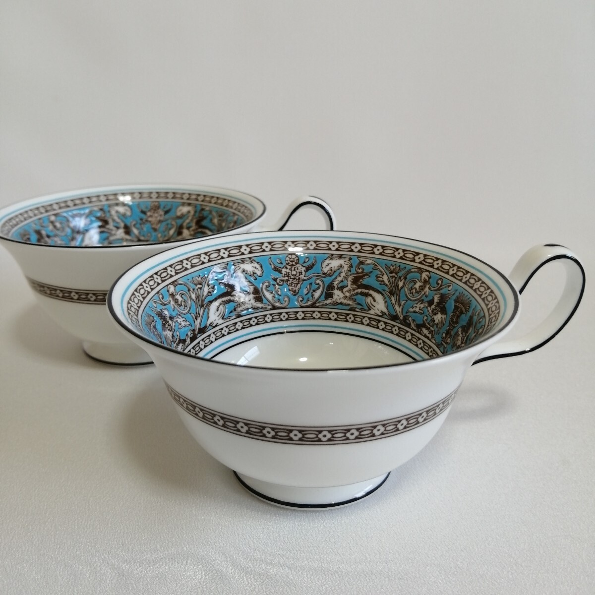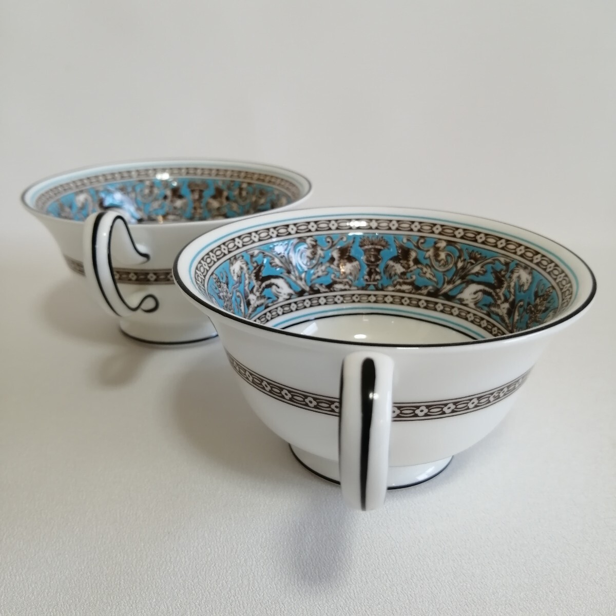 WEDGWOOD ウェッジウッド 黒壺刻印/17.5cmケーキデザート皿×2枚 ティーカップのみ×2個 フロレンティーンターコイズ 英国製