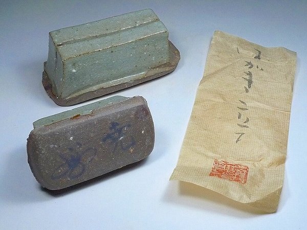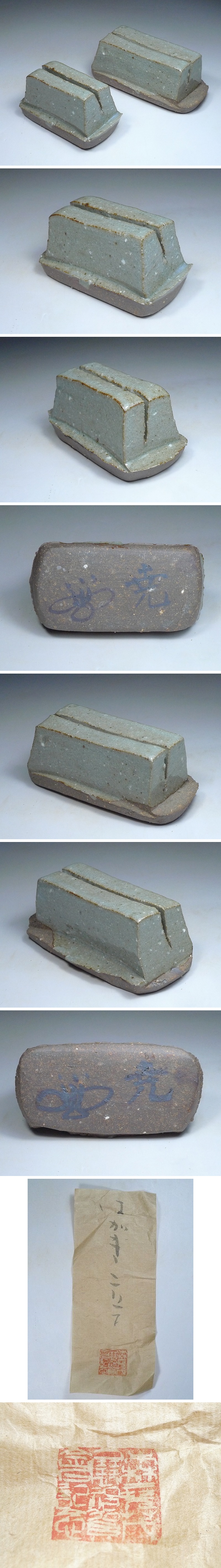 彫刻家 森堯茂展祝賀曾記念品? 陶器のはがき立て 2点セット ペーパースタンド 焼き物