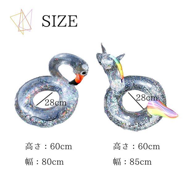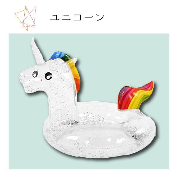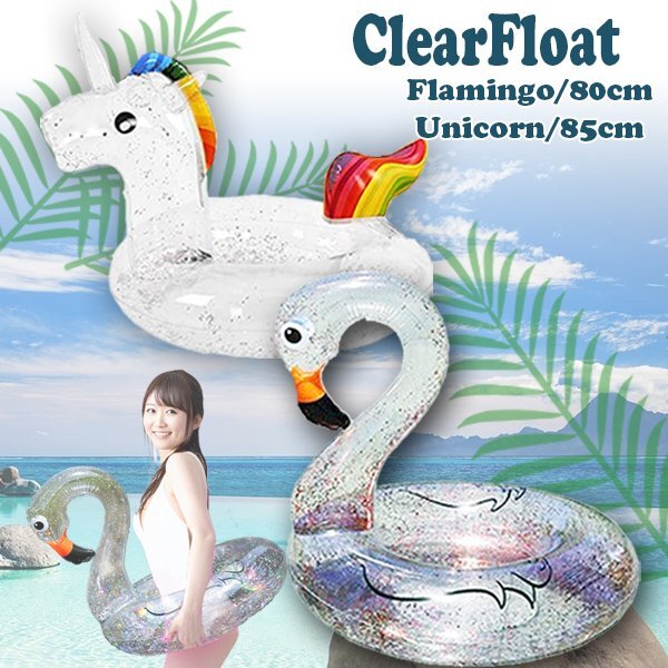 | ☆クリアフロート フラミンゴ ユニコーン ※オーダーフォームにご希望のタイプを知らせください。 ■ユニコーン ■サイズ 【商品名】 クリアフロート フラミンゴ ユニコーン 【素材】 PVC素材 【タイプ】 ◆ユニコーン ★サイズ★ ■幅 :約80cm ■高さ:約65cm ■内側直径:約28cm ◆フラミンゴ ★サイズ★ ■幅 :約80cm ■高さ:約60cm ■内側直径:約28cm 【特徴】 ◆SNSで特に映えるキラキラのラメ入りクリア浮き輪! ◆ナイトプールで特に映える浮き輪で80サイズで大人もガンガン使える大き目の浮き輪です!” ◆プールや海で目立つこと間違いなし! ◆小学生くらいから大人まで幅広くお使いいただけます。 *お子様がご使用される場合は一度室内でサイズの確認をし、抜け落ちる心配がないことを確認したうえでご使用ください。 | ||||