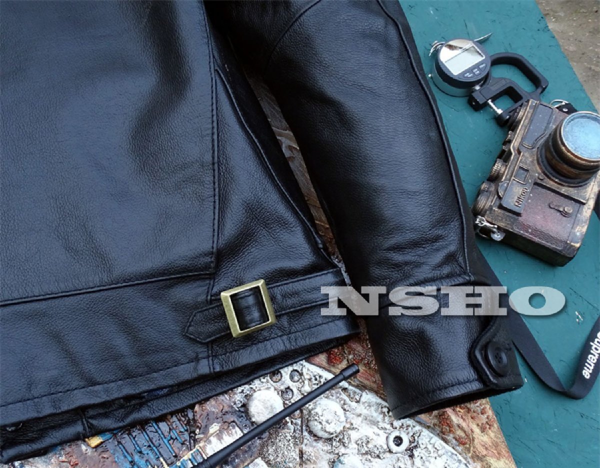 ★ご落札後お取引ナビでご希望サイズをお知らせください★ カウハイドを使用した復刻20's A-1タイプのコサックスポーツジャケットです。 シンプルながらクラシカルな雰囲気を持ち、当時のヴィンテージ感を再現しております。 牛革は耐久性に優れ、長年着込むことで独特の艶や風合いが生まれます。 イタリアンレザーならではの上質な質感を楽しんでいただけます。 ボタンフロント仕様のA-1タイプは、軽快さとスポーティーさを兼ね備えたデザインです。 フライトジャケットの原点ともいえるスタイルで、幅広いシーンに活躍いたします。 ギフトとしてもおすすめで、本物志向の方にご満足いただける一着です。 通勤や普段使いにも取り入れやすい、 timeless なレザージャケットとなっております。 ■状 態 :新品未使用 ■カラー :画像参考 ■実 寸 :背中側採寸 身幅/脇下すぐ ■SIZE :画像参考 ■素材:カウハイド(牛革) ※サイズだけでは無く,必ず実寸をご確認下さい。 ※実寸は平置実寸。計測の仕方で若干の誤差がありますので参考程度。 |