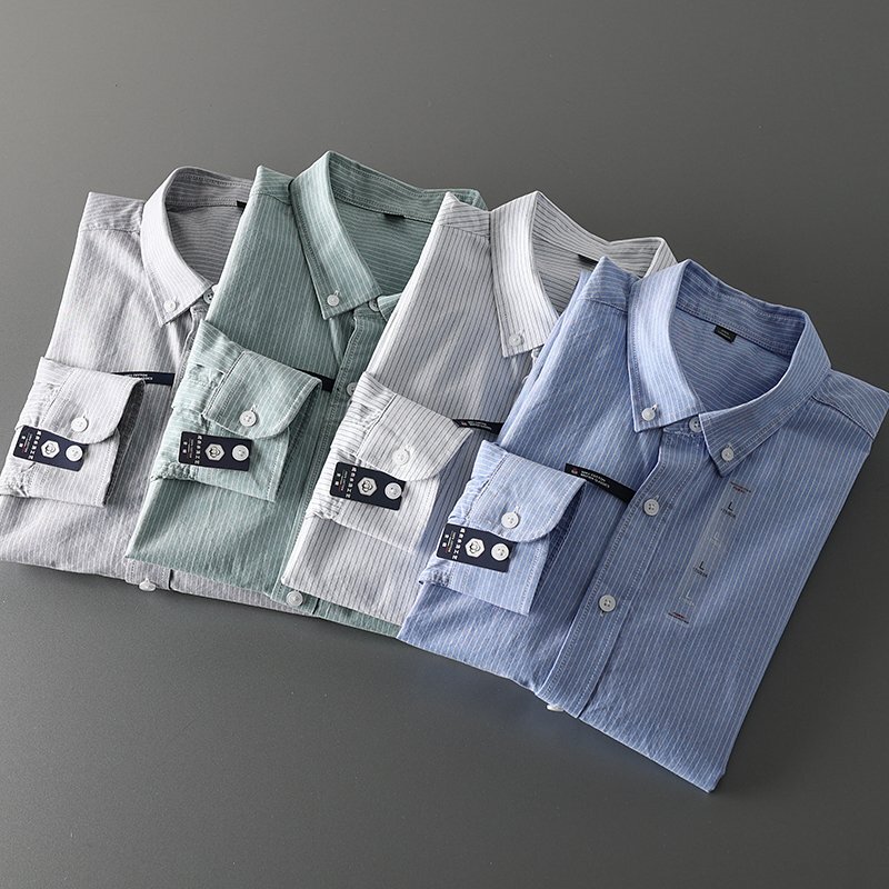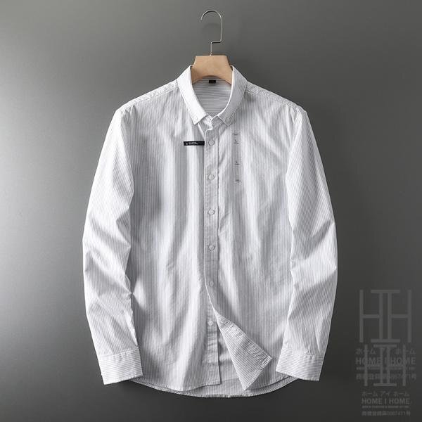 ストライプシャツ メンズ 長袖 シャツ ワイシャツ カジュアル 細ストライプ柄 綿シャツ ビジカジ トップス メンズファッション