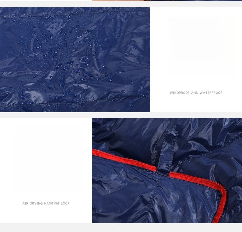 ★表地と裏地は厳格な400Tナイロンを使用しています。防水性、耐久性に優れ、羽毛の流出を防ぐことができます。