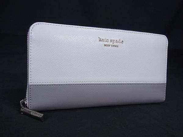kate spade ケイトスペード PWR00281 レザー ラウンドファスナー 長財布 ウォレット 小銭入れ 札入れ アイボリー系×グレー系 DK7530