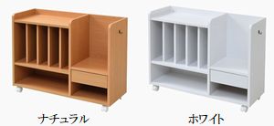 「リビング学習」にぴったりなキャスター付きのランドセルラックです。 真ん中の仕切り棚は5つに仕切られているので曜日や科目に合わせて収納できます。 真ん中の引出しはペンケース等や、学校から配られるプリント類に便利です。 高さを抑えた設計なので、カウンター下にも設置できます。 本体横は左右どちらにもフックの取り付けが可能です。 |