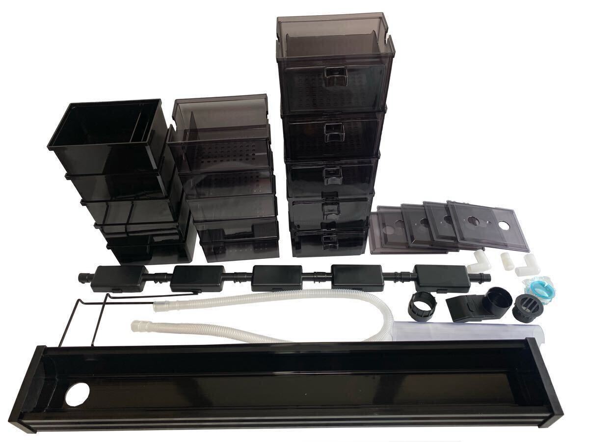 商品では三段階濾過(上は物理濾過、真中は生物濾過、下沈澱槽)2層トリクルフィルターはオールインワンフィルターです。 濾過槽の上層は物理濾過層で、濾過マット入れます