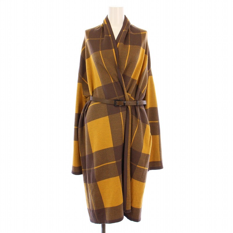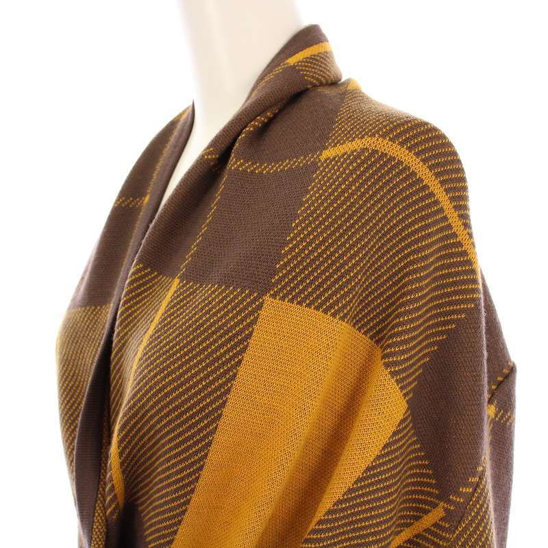フォクシー FOXEY ニットカーディガン 長袖 Vネック 前開きトッパー ウール チェック柄 ベルト F 茶 ブラウン /BB レディース