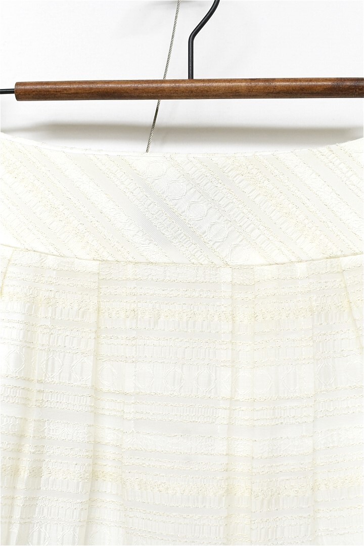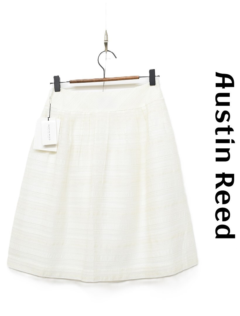 G511/美品 Austin Reed オースチンリード ひざ丈フレアスカート レース 総柄 ラメ 38 M 白
