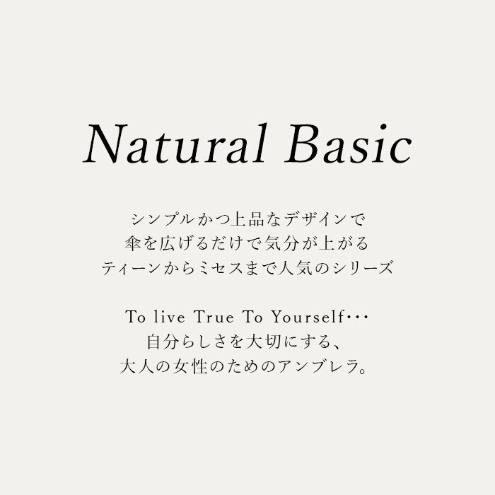 | 商品説明 | ・・【雨空に花咲く、大人のバイカラー】 ・雨の日のスタイルにほんのり大人色をプラス♪「Natural Basic 8本骨・バイカラーアンブレラ」 ・【軽くて、しなやか、折れにくい】 ・親骨には丈夫で軽量なグラスファイバー素材を使用。8本骨でしっかり支える、安心の耐風仕様。 ・【晴れでも雨でも大活躍】 ・細番手の糸で織られた高密度ポリエステル生地が紫外線をカット!晴れの日は日傘として大活躍。 ・※紫外線遮蔽率:85%以上 ・【濡れにくい安心のサイズ感】 ・親骨の長さ約60cm、傘生地の直径約102cmのやや大きめサイズで、肩先までしっかりカバー。 ・【スリムでラクラク持ち運び】 ・スリムな中棒と軽量な傘骨素材を使用し、雨が降りだしそうな朝も腕に掛けてラクラク持ち運び♪ ・【片手で簡単・ワンタッチ】 ・片手に荷物がある時や、突然の雨でもワンタッチで傘生地がパッと広がるジャンプ式タイプ。 ・【たたむ時も手間取らない!】 ・バンドはスムーズにたためるスナップボタン式。ゴールド色のカシメが華やかなアクセント。 ・【高級感溢れるレザー調ハンドル】 ・手のひらに馴染むハンドルは、リッチなレザー調生地が女性らしい繊細な指先をさりげなく演出。 ・【スタイルに合わせて選べる大人色】 ・くすみカラーやチェックの傘生地の裾を、優しいミルク色で縁取った上品なバイカラーデザイン。 ・【About Natural Basic】 ・・「Natural Basic」は、シンプルかつ上品なデザインでティーンからミセスまで人気のアンブレラシリーズ。傘を広げるだけで気分が上がる☆To live True To Yourself・・・自分らしさを大切にする、大人の女性のためのアンブレラ。 |