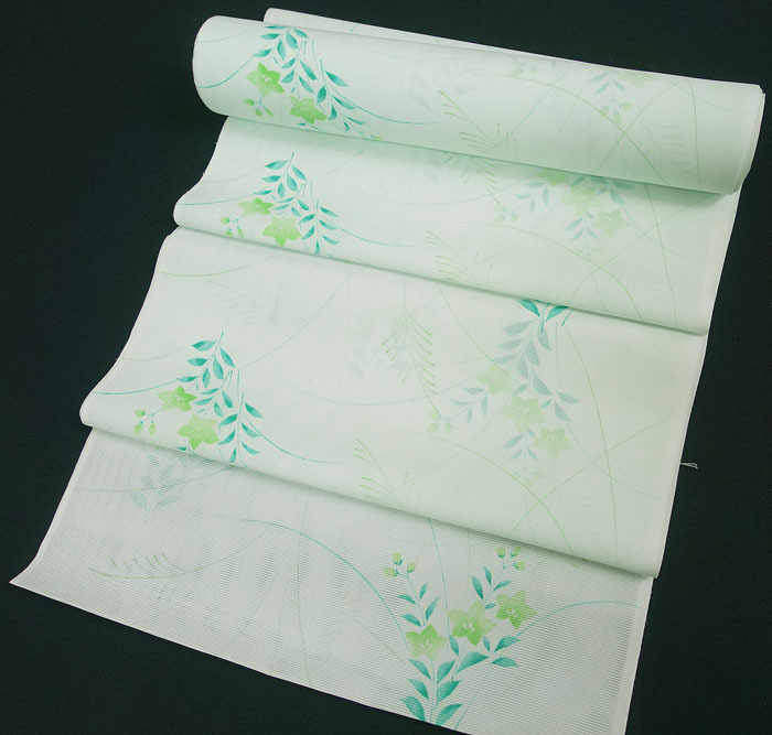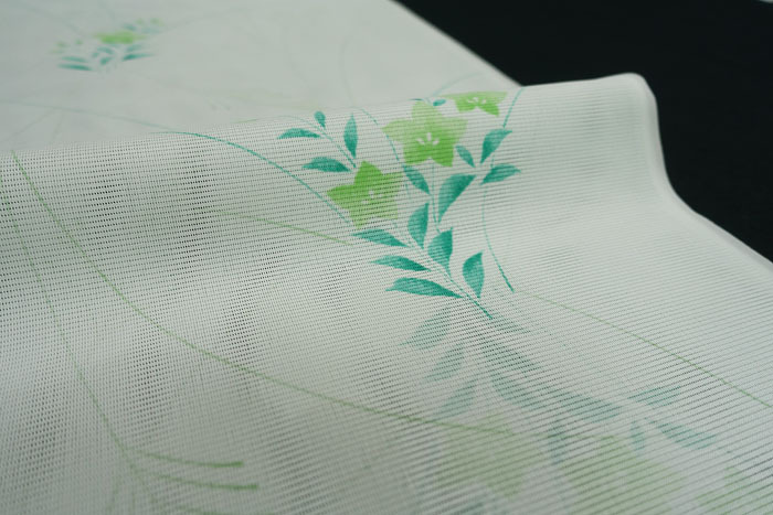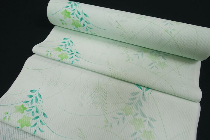 反物 未仕立て 夏物 絽 洗えるきもの ススキに桔梗の花柄 ポリエステル 11921