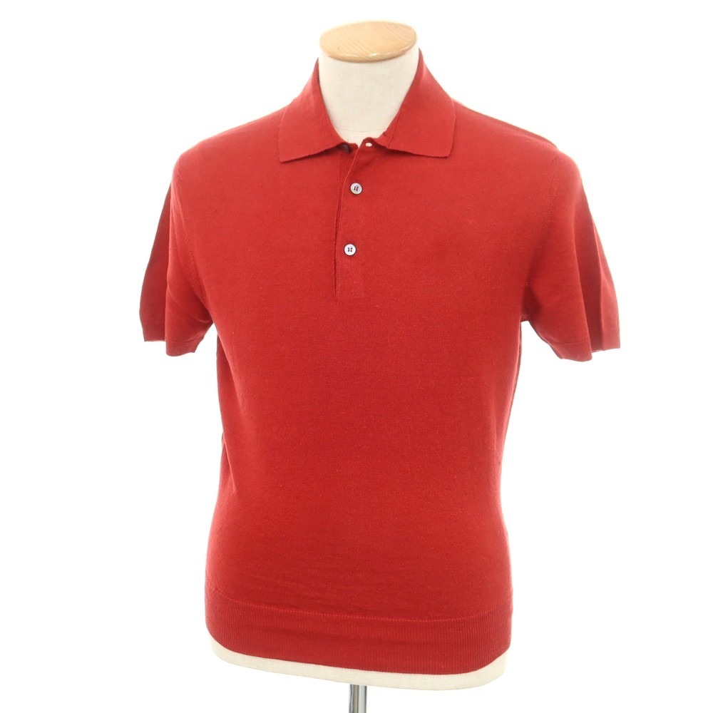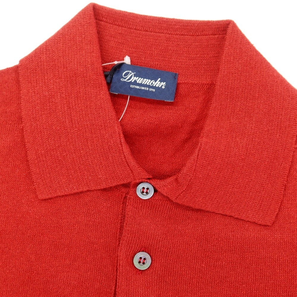 【新品】ドルモア DRUMOHR リネンポリエステル 半袖ポロニット レッド【サイズ42】