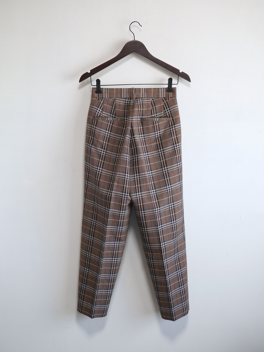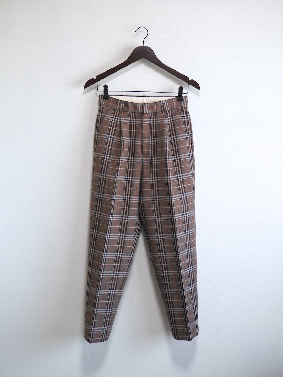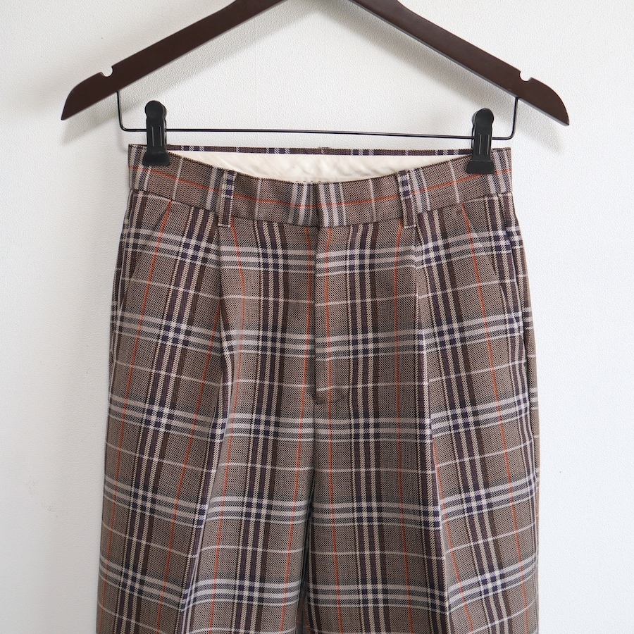 ドライタッチな素材を使用したハイウエストのスラックスパンツ。 メンズライクな印象になりやすいデザインですが、表面にさりげない光沢感があるので、少し艶のある女性らしさも合わせ持った独特な雰囲気が特徴です。