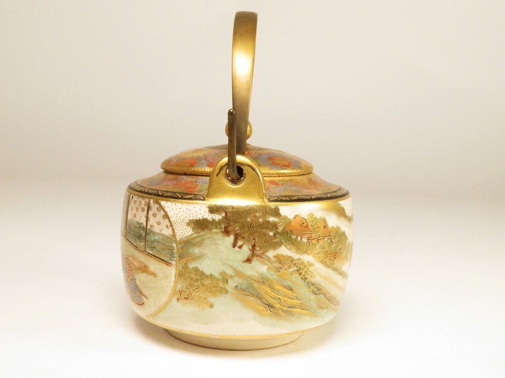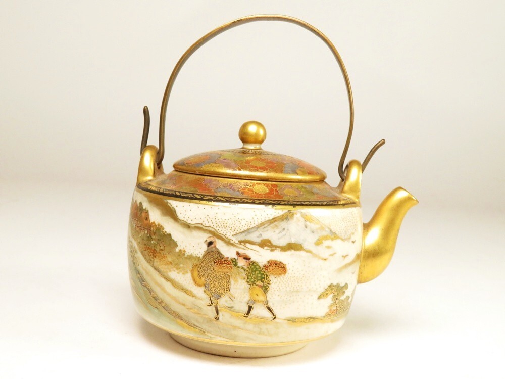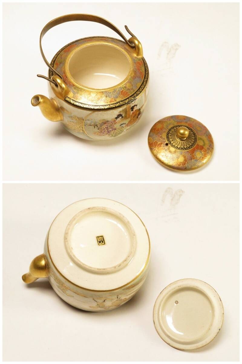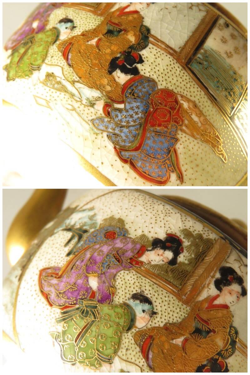 ●明治期 薩摩焼 金襴手 美人図 急須になります。古い物ですが極力状態の良い作品を出品しておりますので是非ご覧ください。