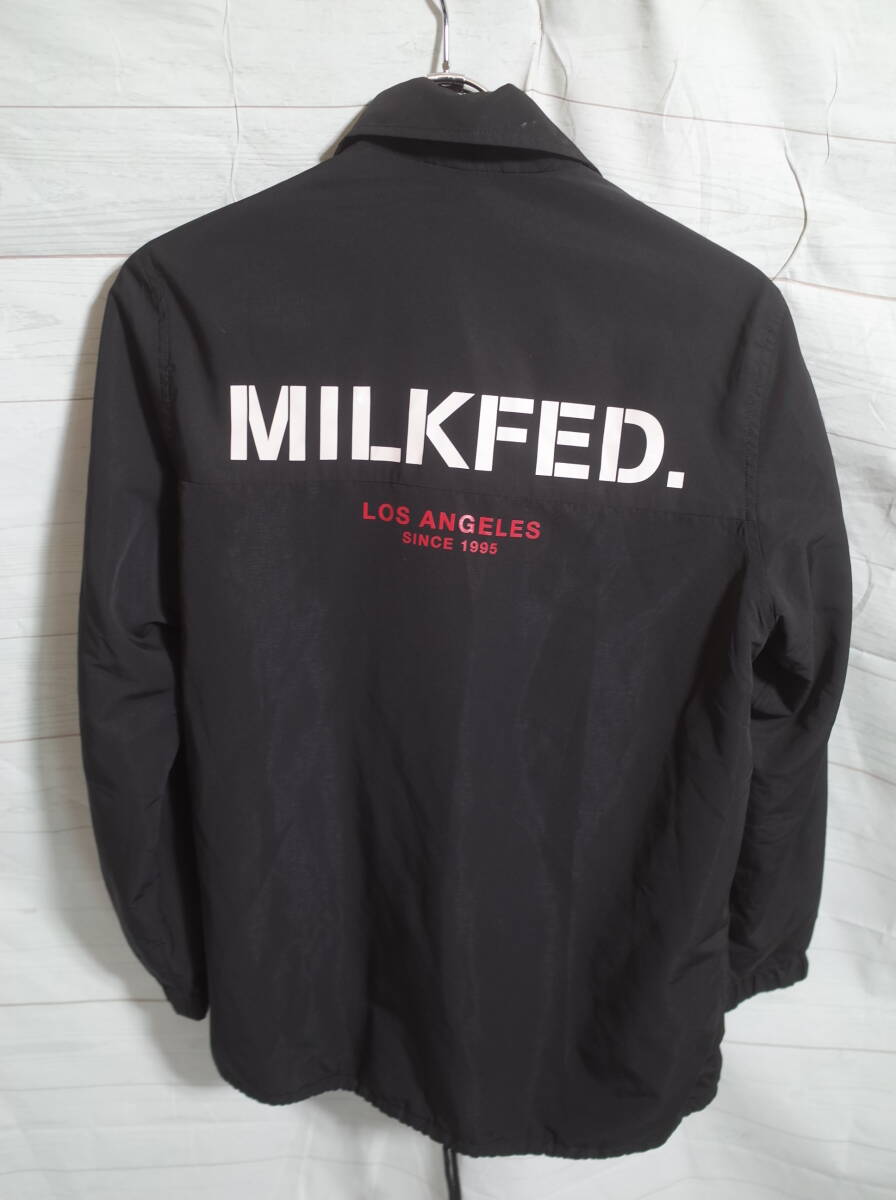 レディース pm186 MILKFED. ミルクフェド ロゴ プリント コーチジャケット M ブラック