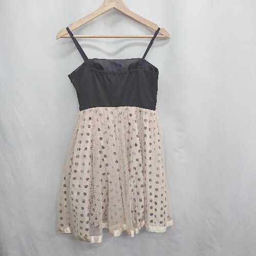 ◇ ⊂ ◎ Apuweiser riche ドット柄 チュール素材 膝丈 ワンピース サイズ2 ブラック アイボリー系 レディース E