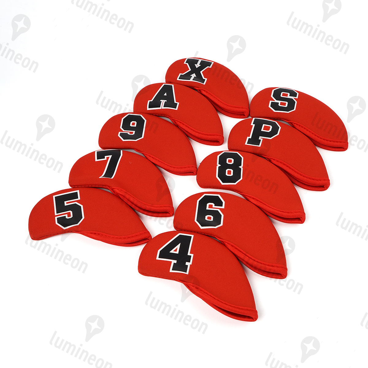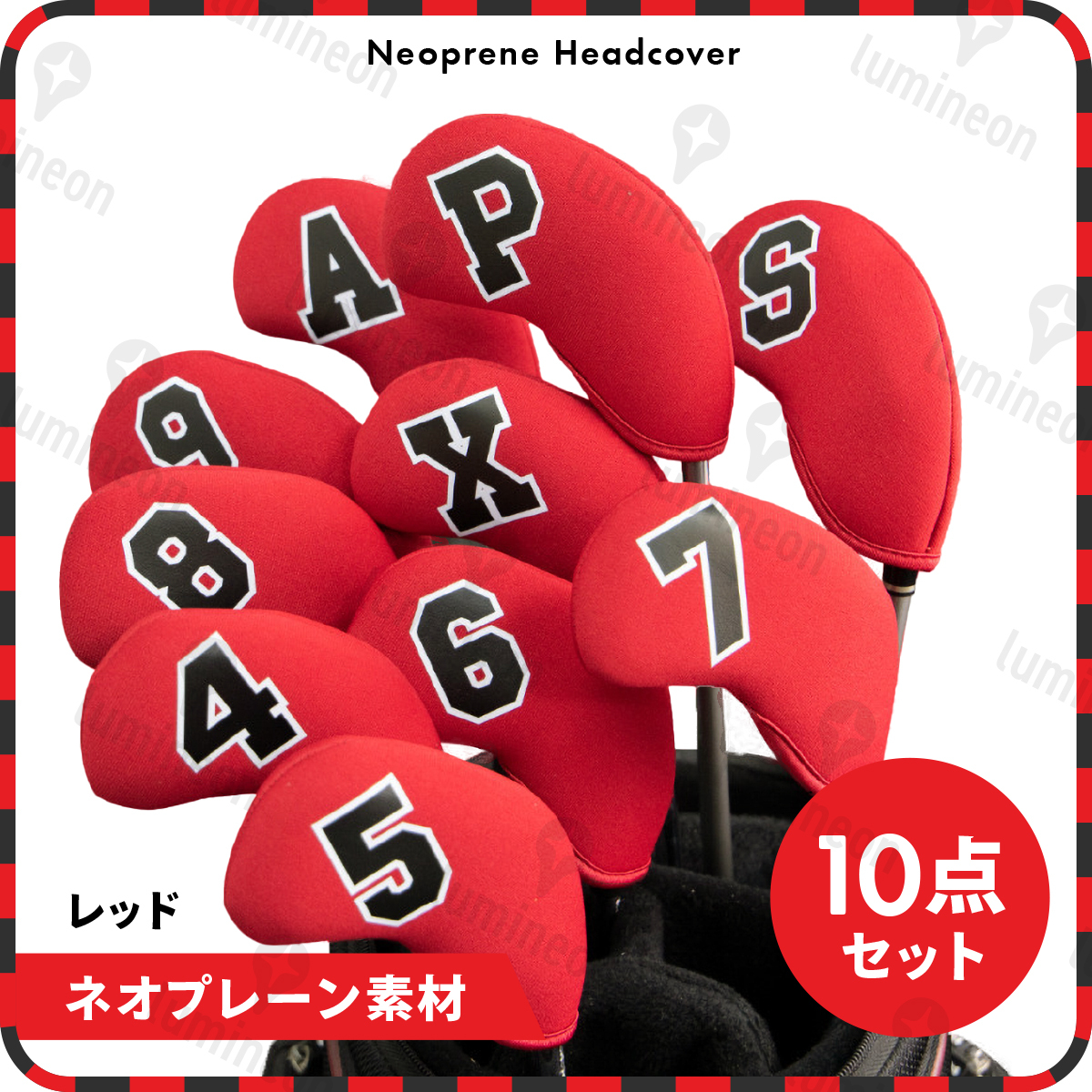 アイアン カバー ヘッド 10点セット ゴルフ クラブ レッド 赤 おしゃれ フード 番手付き 高級 プロ 保護 シンプル おしゃれ 安い g079e