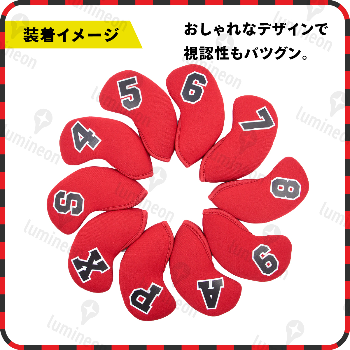 アイアン カバー ヘッド 10点セット ゴルフ クラブ レッド 赤 おしゃれ フード 番手付き 高級 プロ 保護 シンプル おしゃれ 安い g079e 3