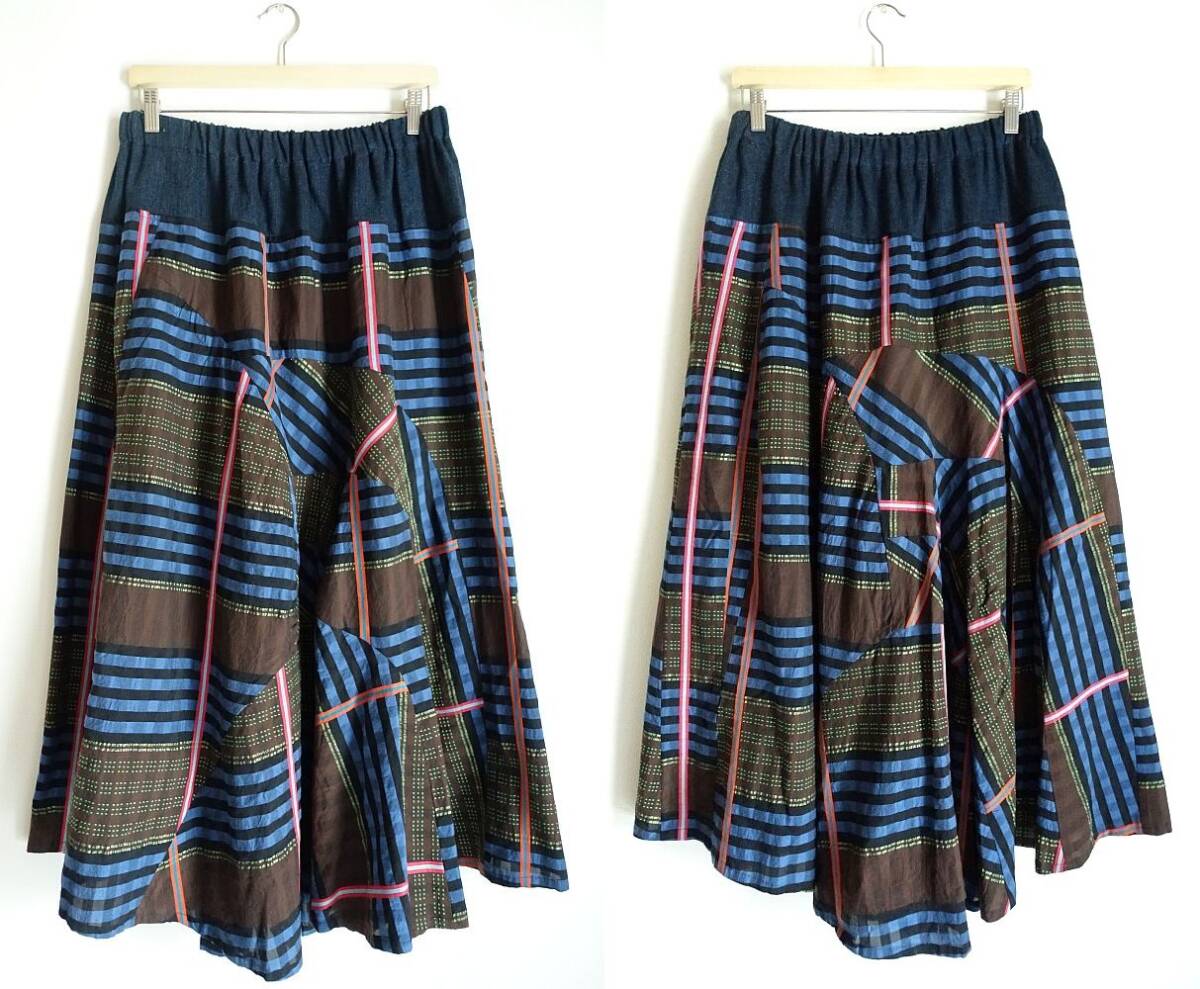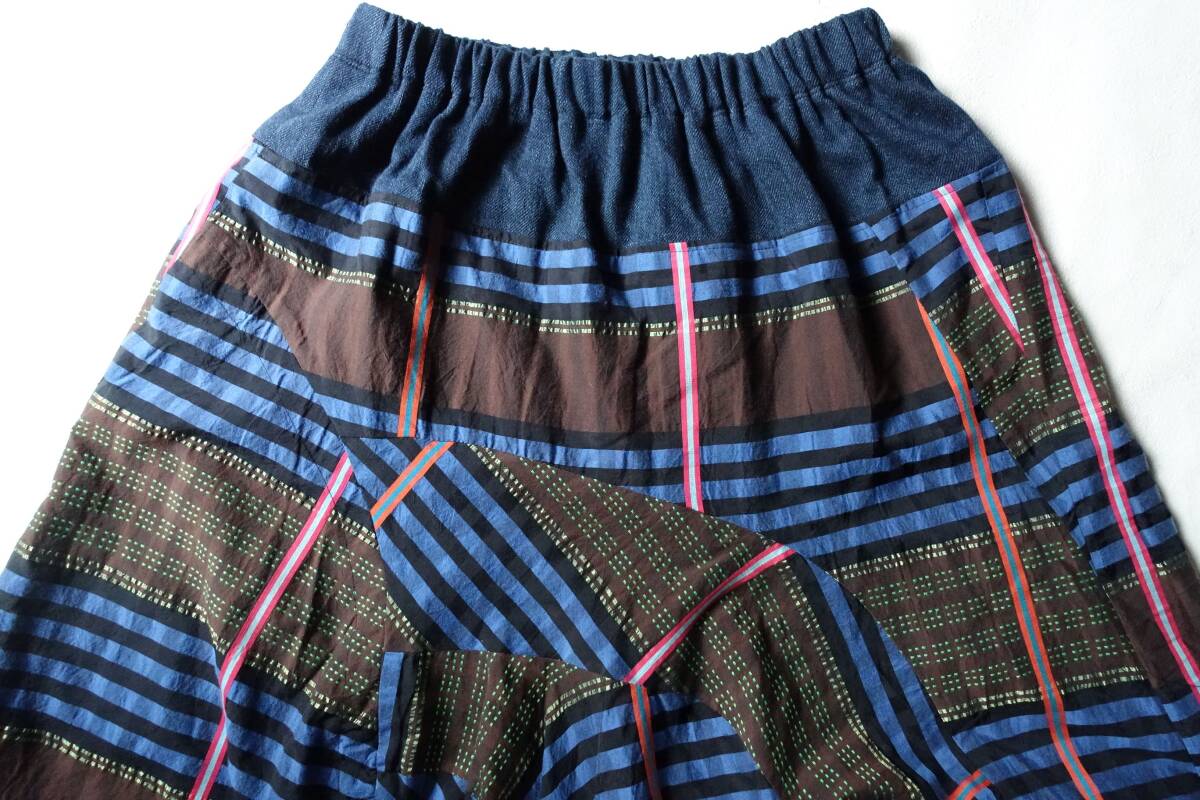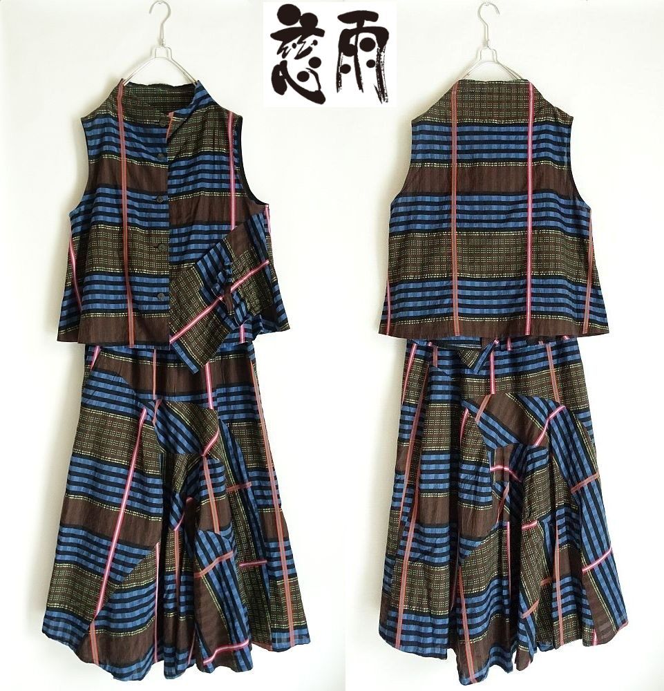 慈雨 センソユニコ のベストとロングスカートのセットアップ。それぞれ別売りでしたが、セットアップで着用できるよう2点セットで出品します。チェック・刺し子のような刺繍・カラフルなラインなど複雑なカッティンで、パッチワークのように組み合わさったこだわりのデザイン。