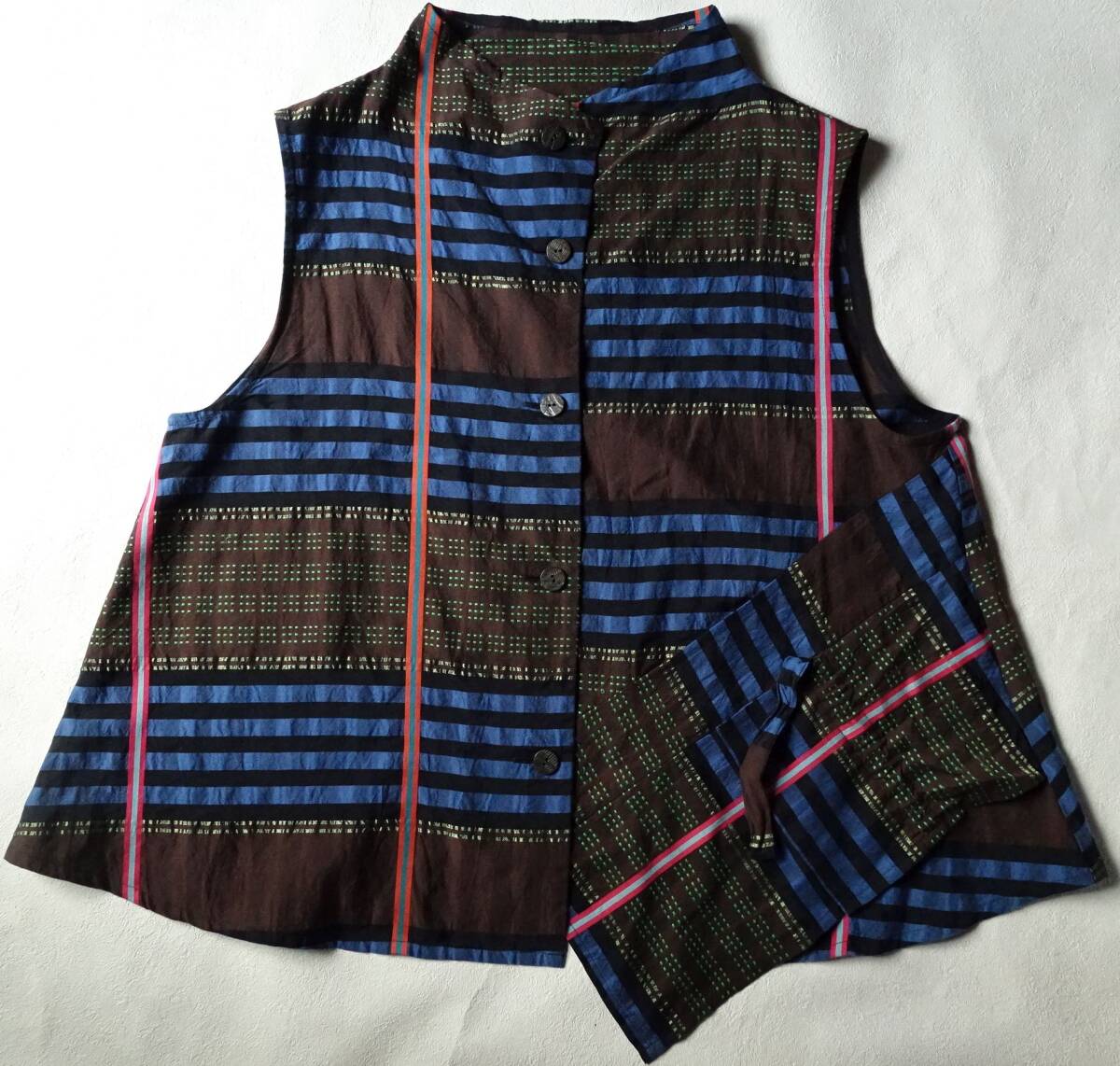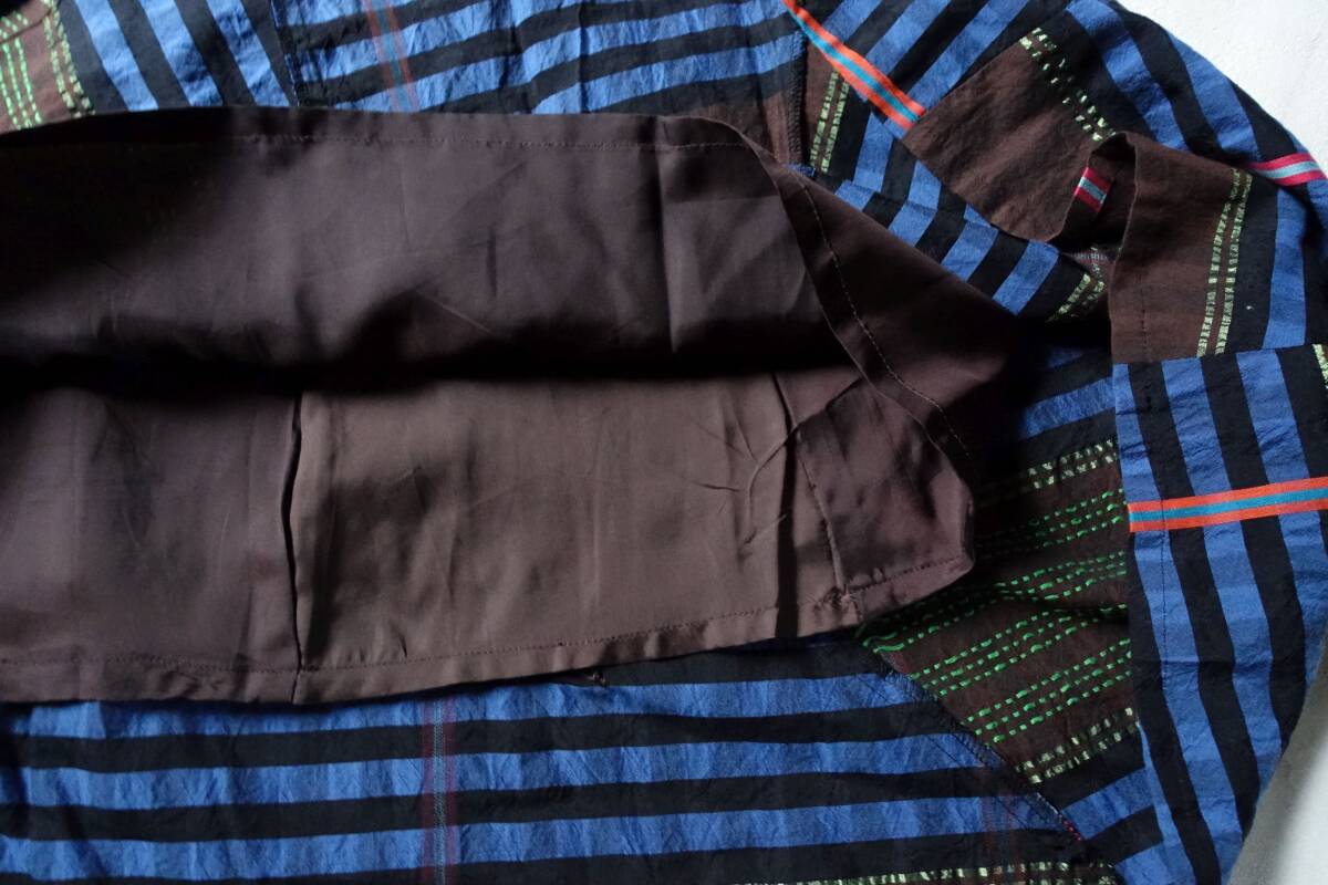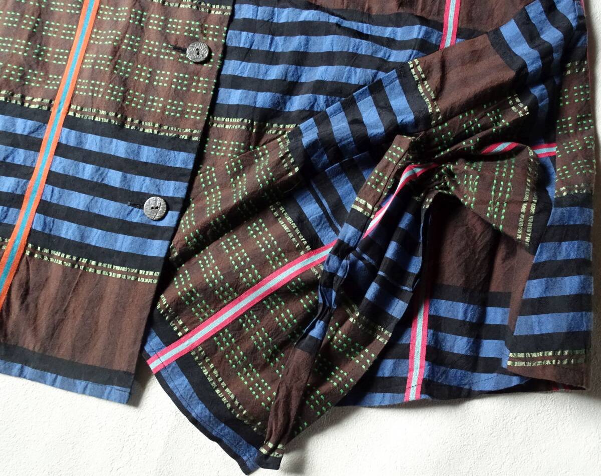慈雨 センソユニコ のベストとロングスカートのセットアップ。それぞれ別売りでしたが、セットアップで着用できるよう2点セットで出品します。チェック・刺し子のような刺繍・カラフルなラインなど複雑なカッティンで、パッチワークのように組み合わさったこだわりのデザイン。