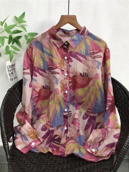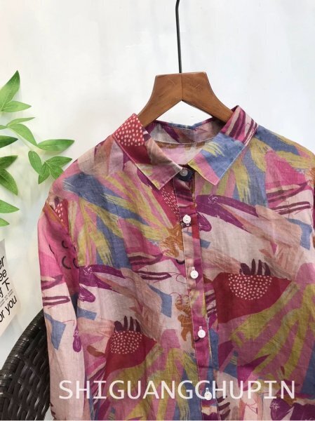 yh チュニック ワイシャツ プリント花柄 苧麻100% ゆったり オシャレ フリーサイズ ナチュラル