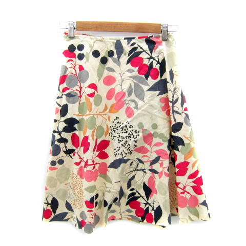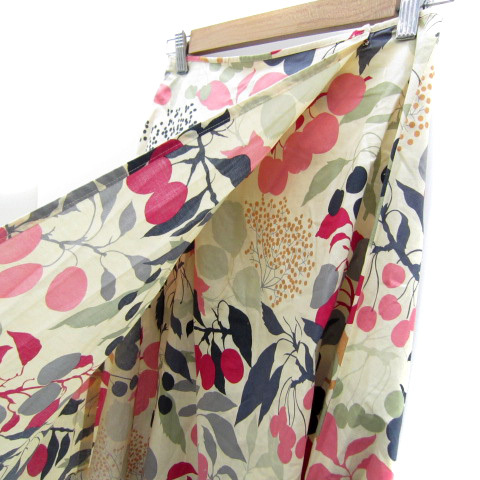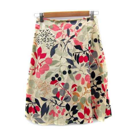 マカフィー MACPHEE トゥモローランド ラップスカート フレアスカート ミモレ丈 花柄 マルチカラー 38 M ベージュ /SY18 レディース