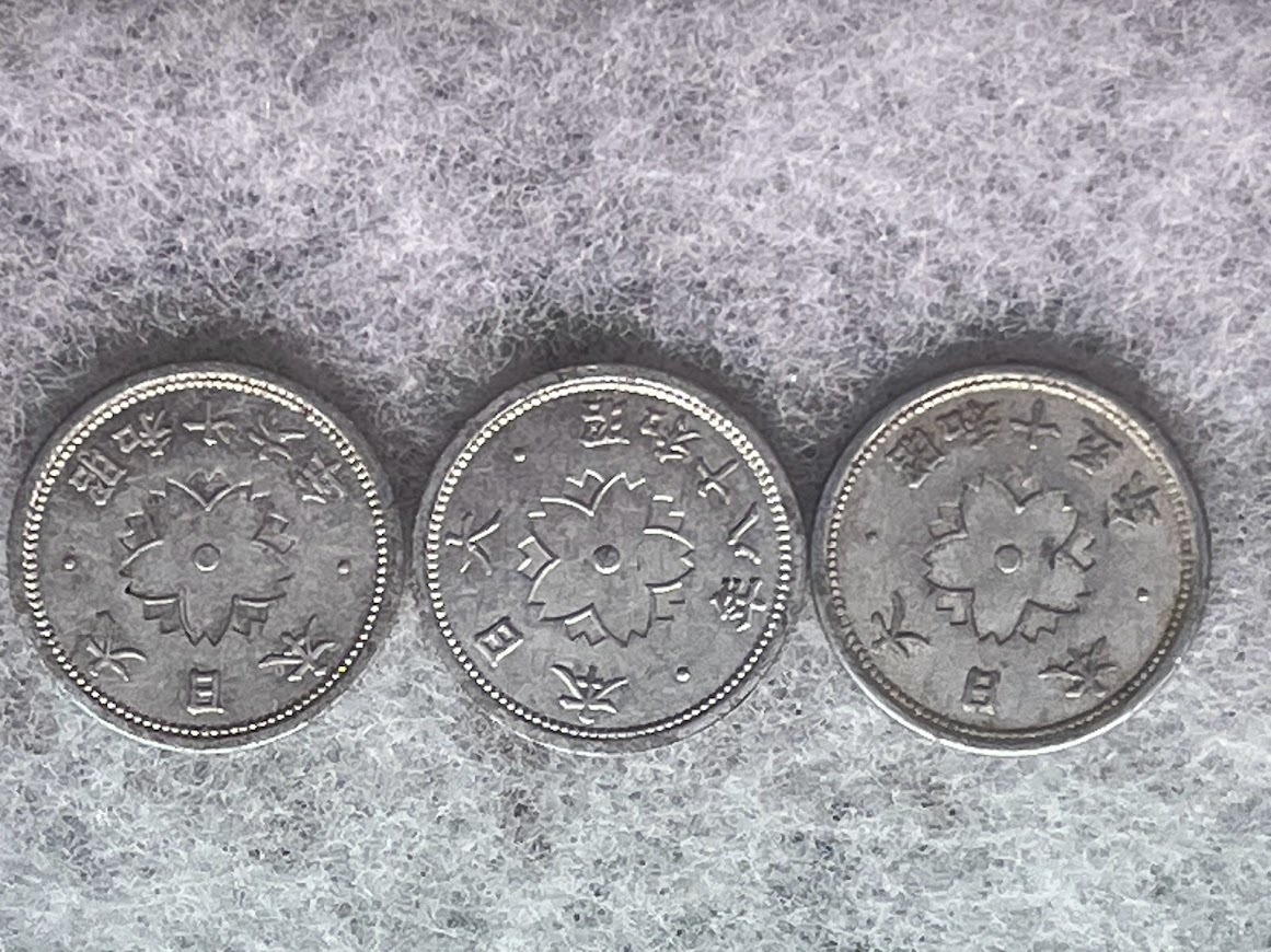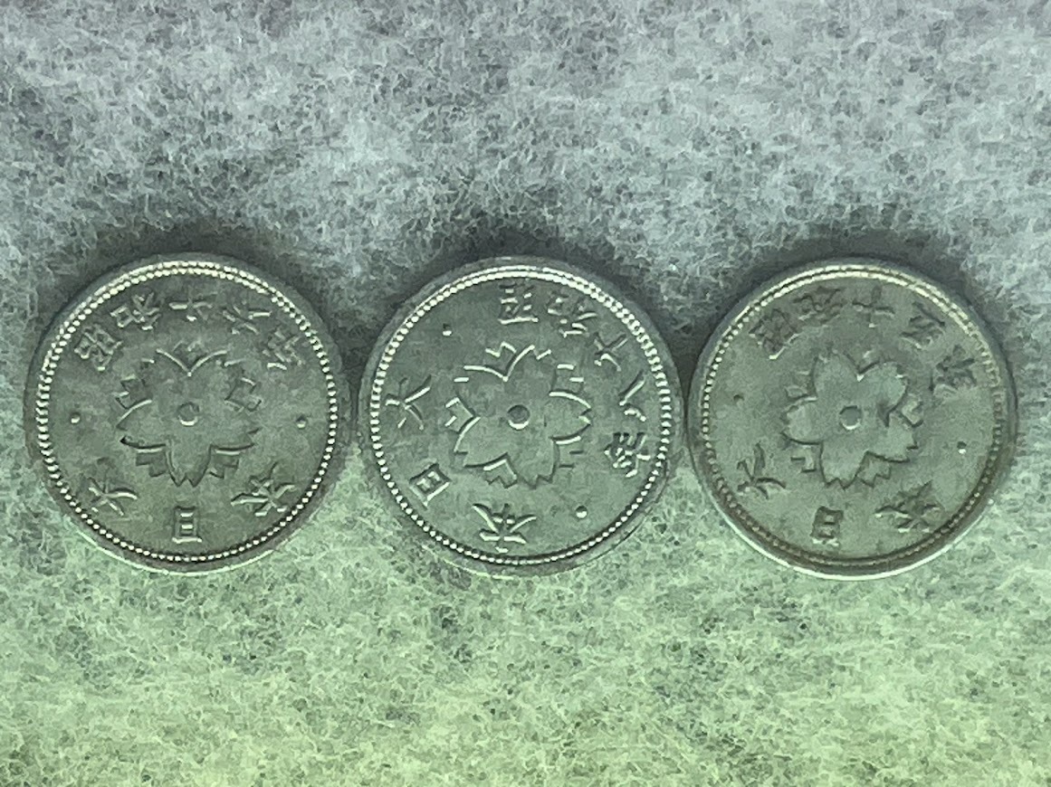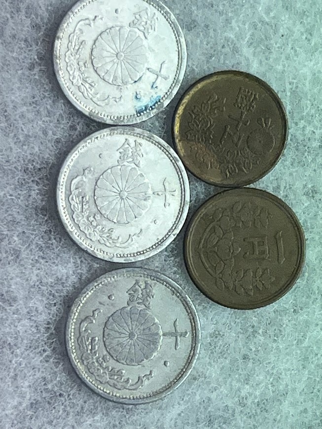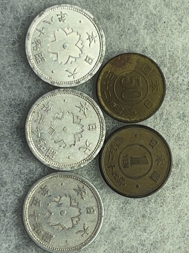 1円硬貨、昭和15,16,17年 昭和23年黄銅化貨50銭、昭和24年1円、5点セット