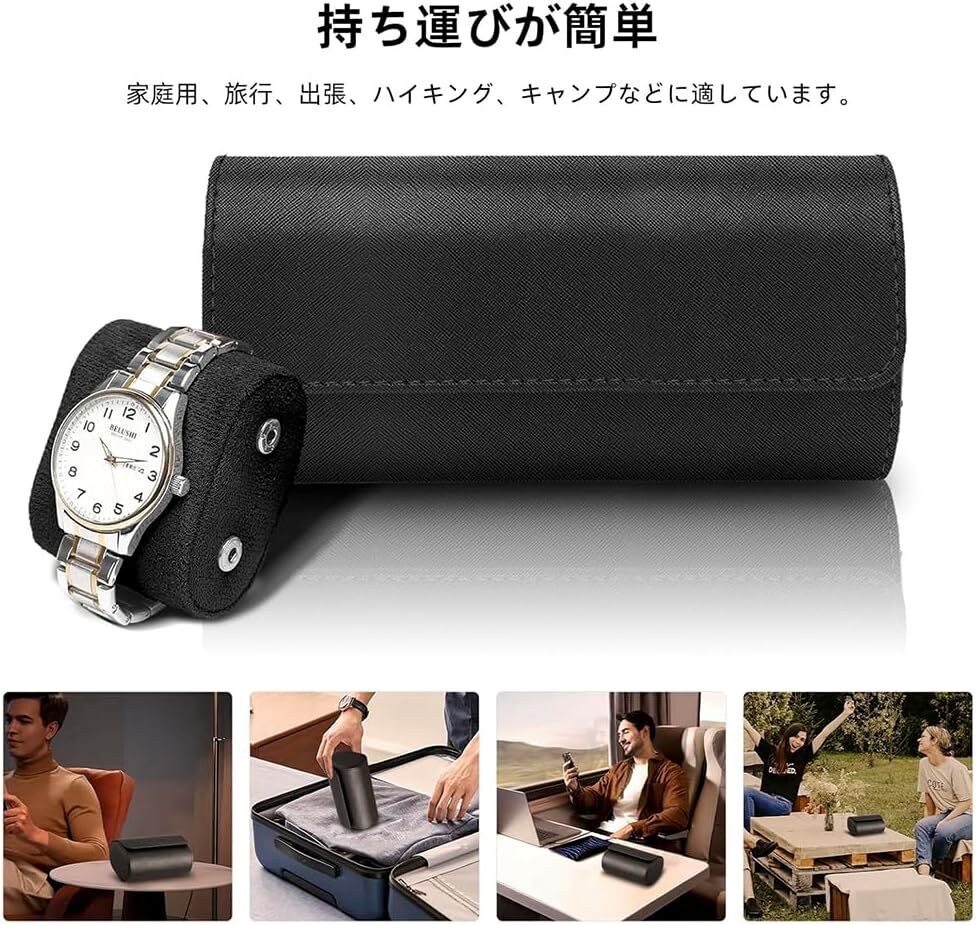 腕時計 ケース 時計ケース ウォッチケース 持ち運び PUレザー ジュエリーボックス 時計収納ケース 3本用 Black