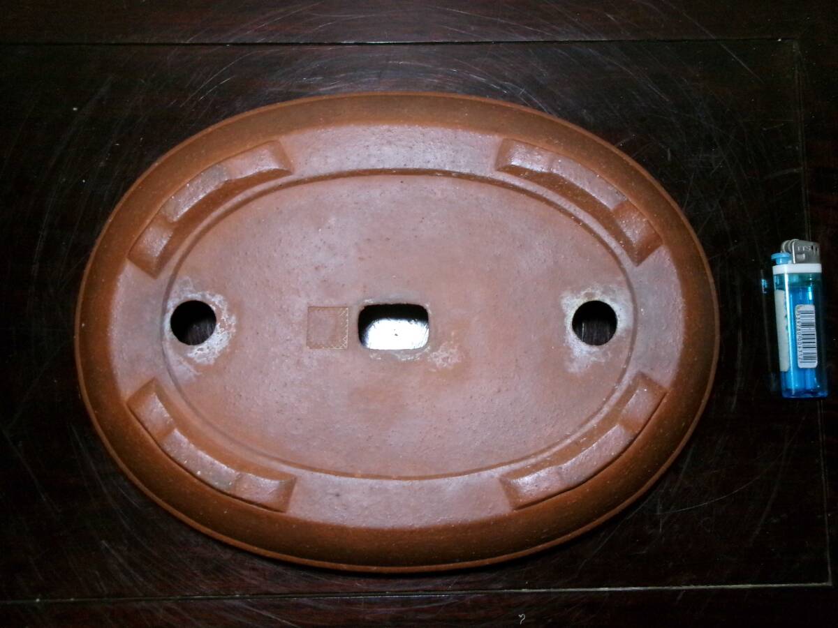 | 超希少 時代感抜群 中国古鉢 中国古玩 中国宜興 荒紫泥段足胴帯内縁楕円鉢 幅30センチ 落款品 在銘 時代品 | |||||||||||