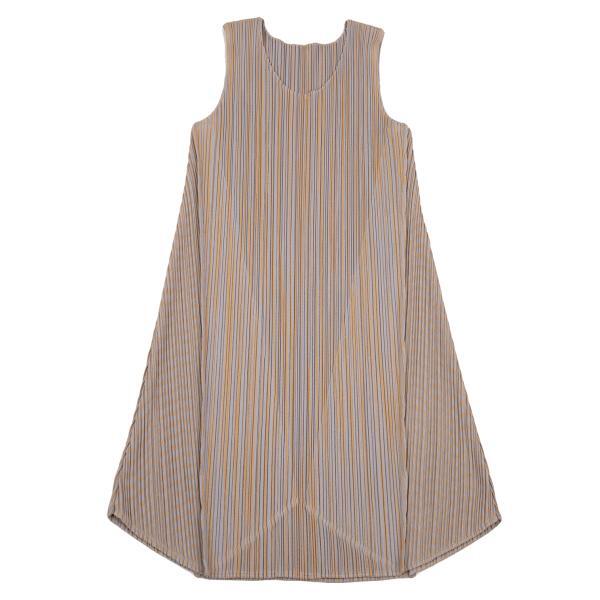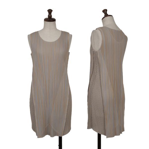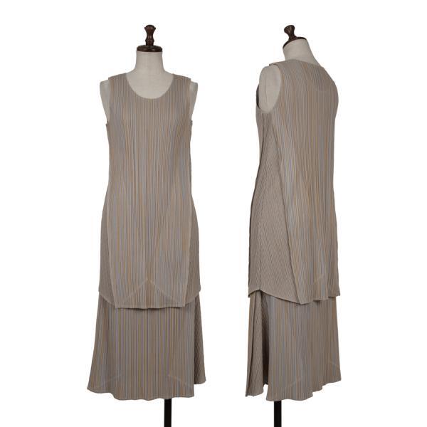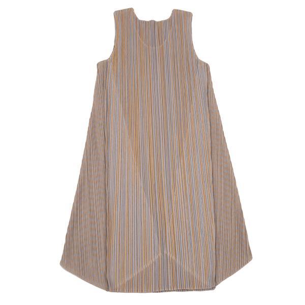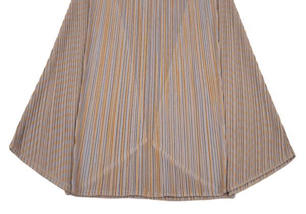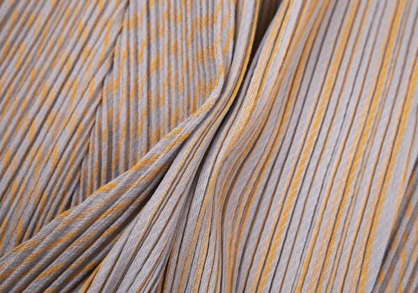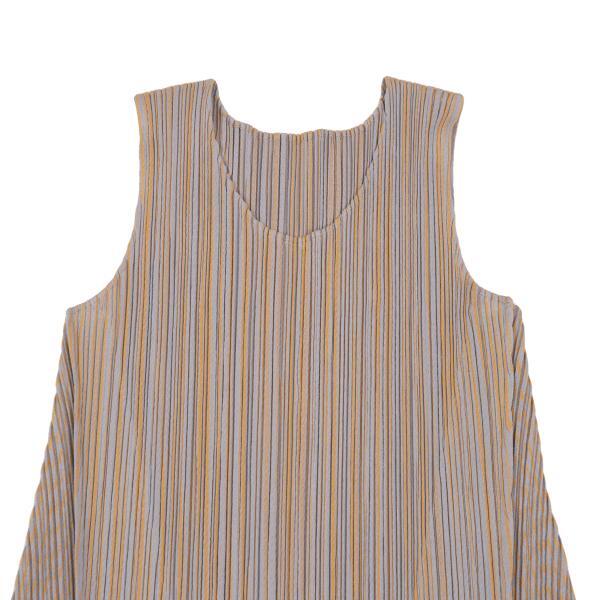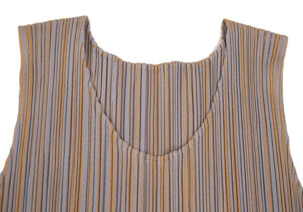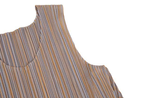 プリーツプリーズPLEATS PLEASE ストライプジャガード切替ノースリーブチュニック グレー黄3 |