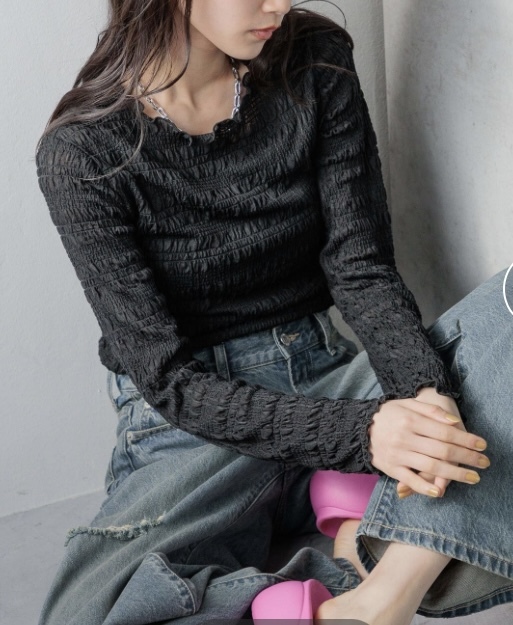 適度な透け感で1枚でも使いやすいアイテムなので春先まで長い期間着用いただけます。